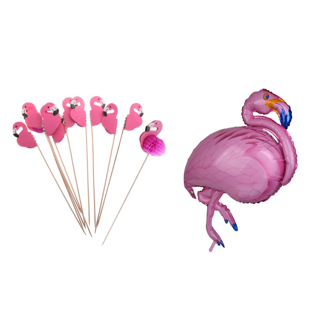 Hawaiian style large Flamingo balloon and cupcake picks decorationSpecification: