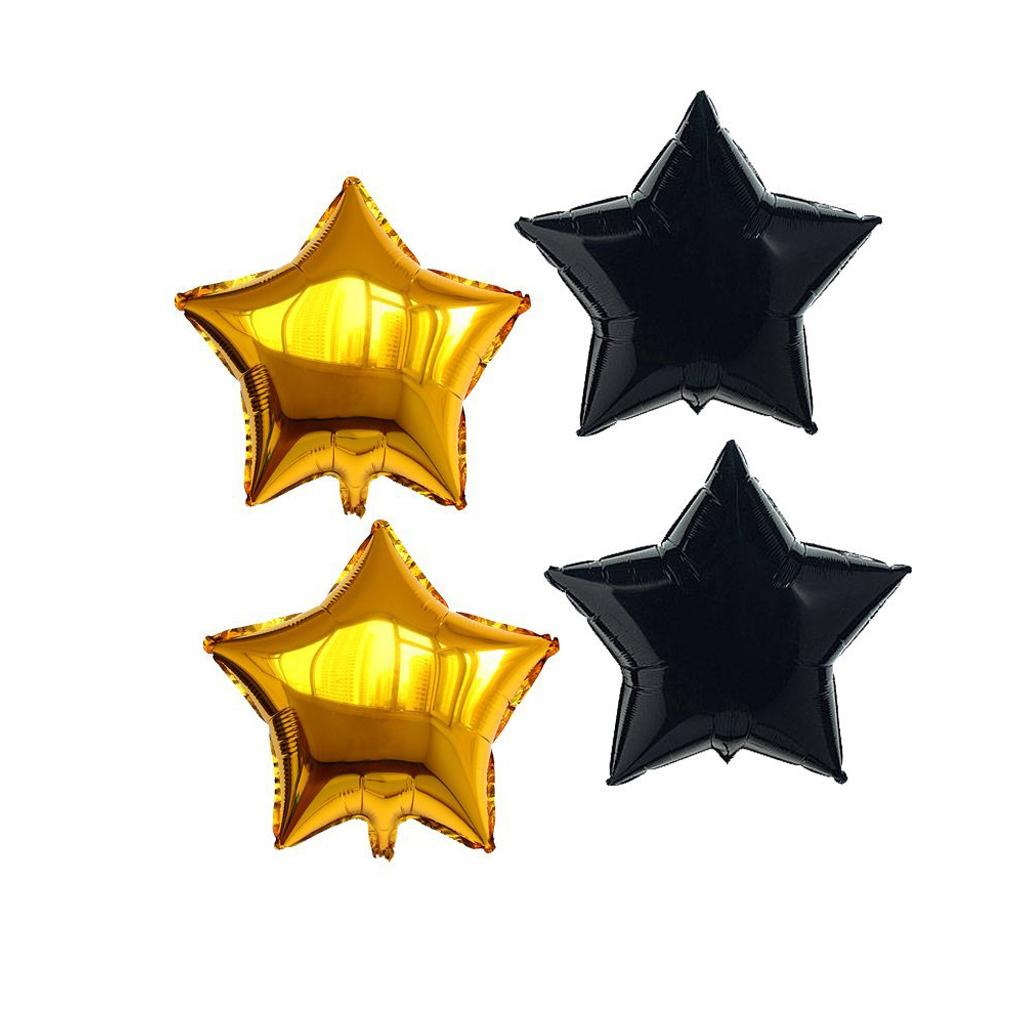 4 Pieces Stars Balloons (2 pieces gold+2 Pieces Black one)
