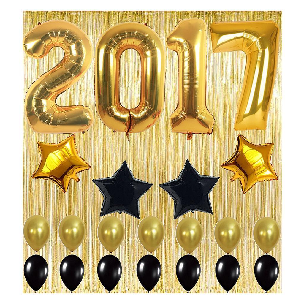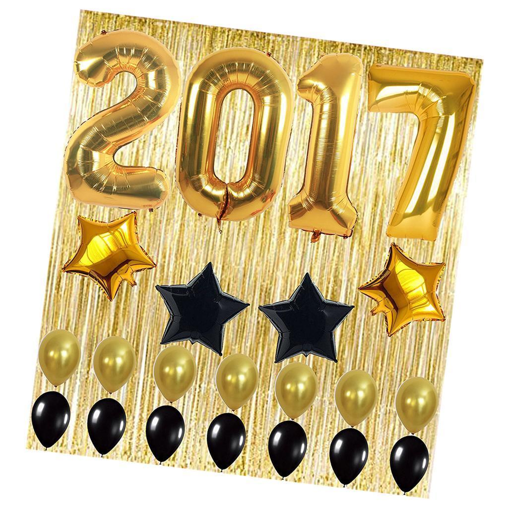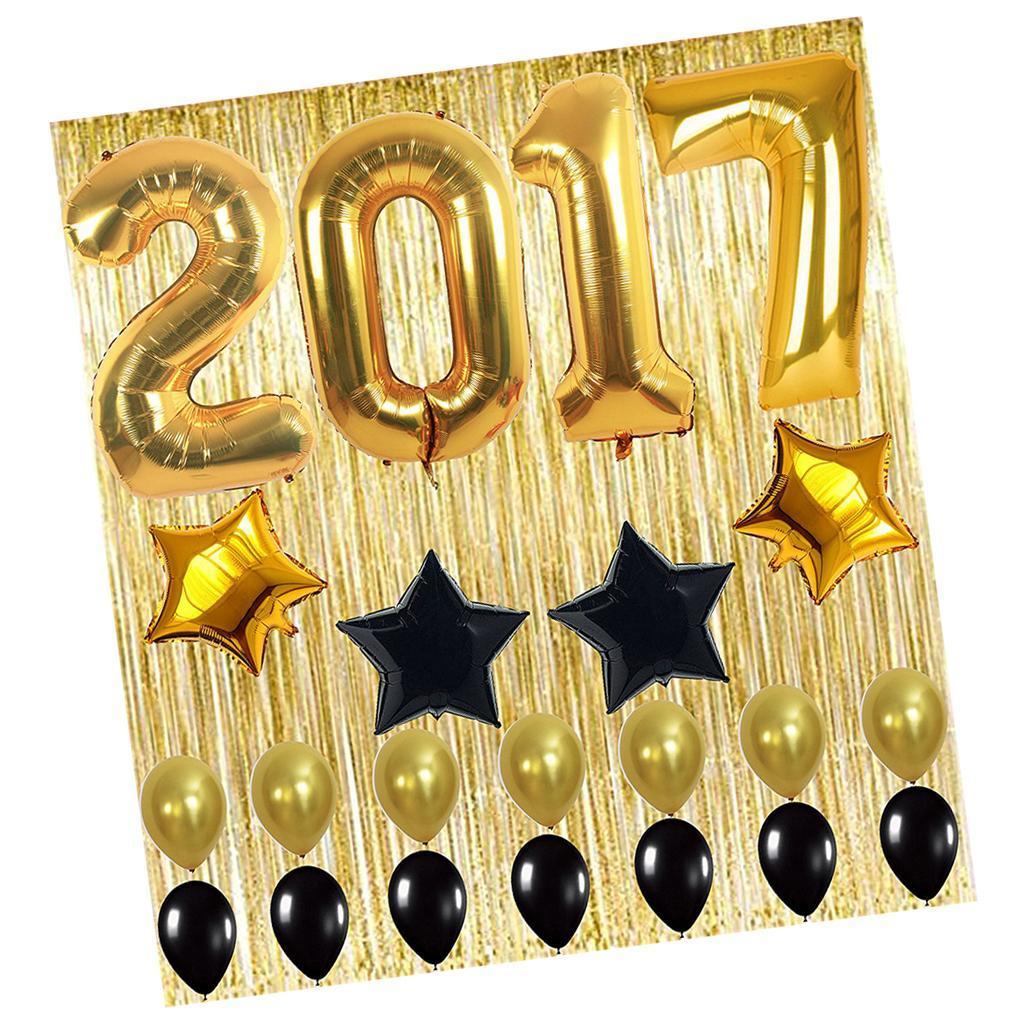 These are the huge gold and black graduation party balloons and curtain decoration kits