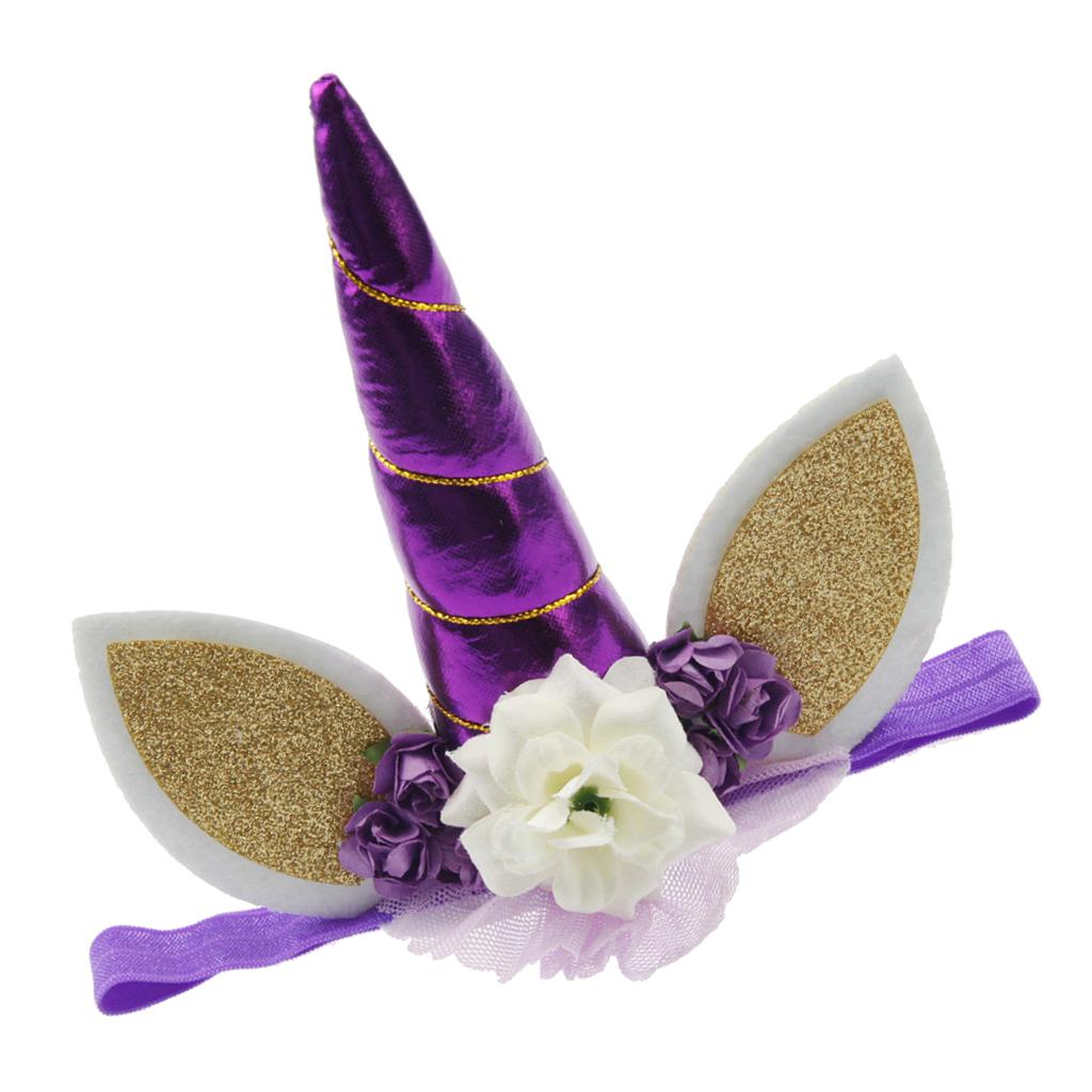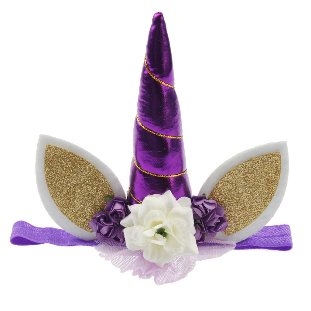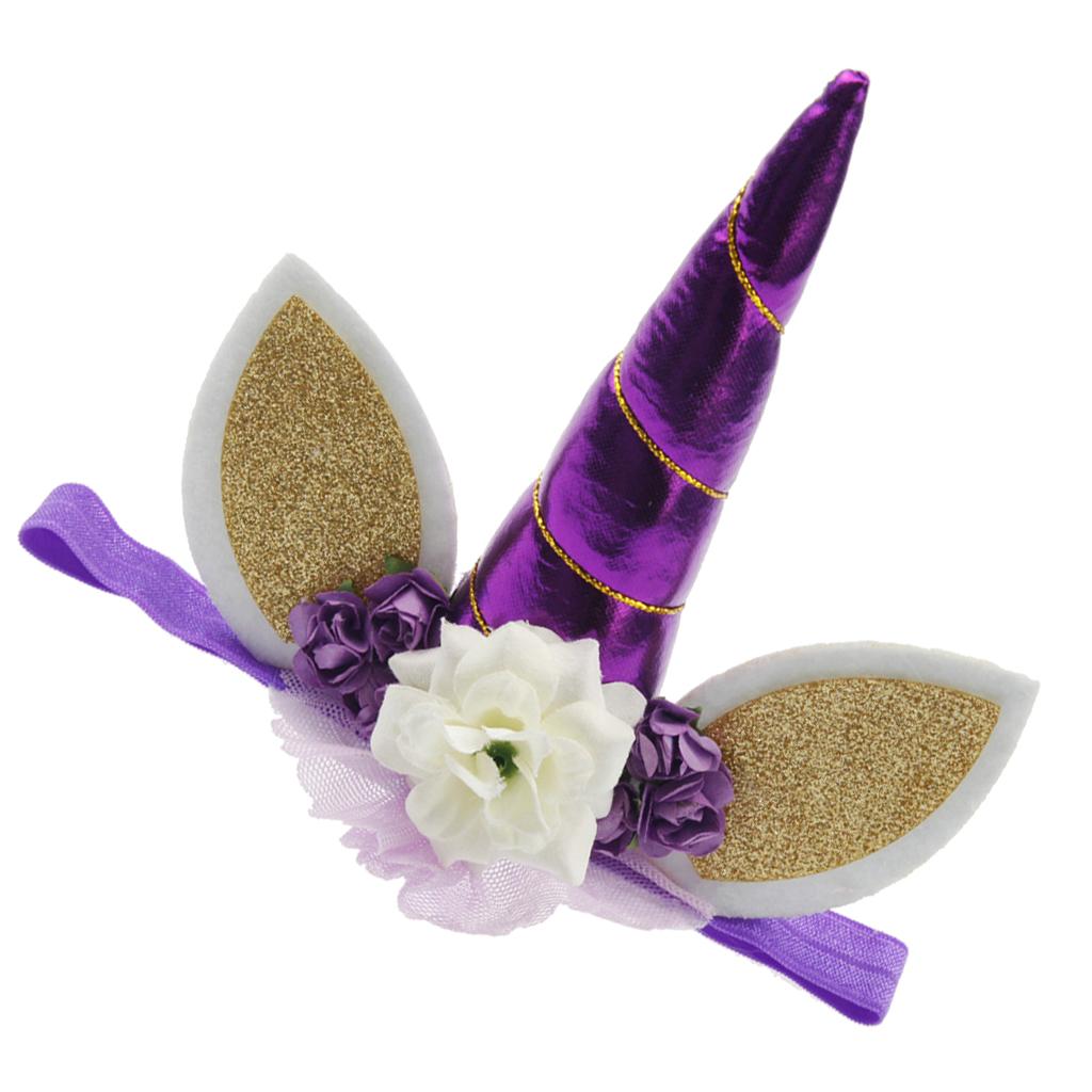 Magical Unicorn Horn Ear Headband Newborn Baby Girls Party Hair Clip Purple