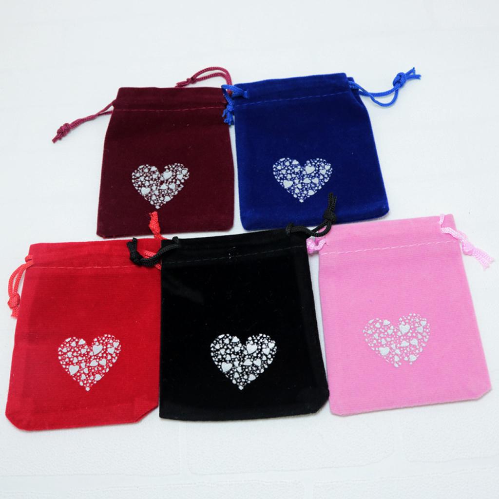 • Fashion heart decoration sturdy pouches with braided drawstrings.
