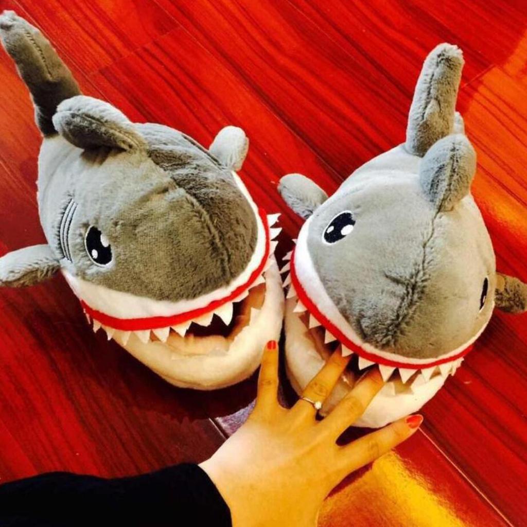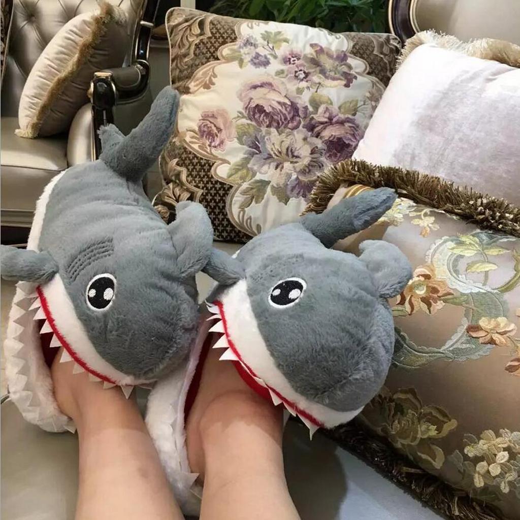 Naughty Shark Warm Soft Plush Slippers Home Winter Slippers Novelty Gift