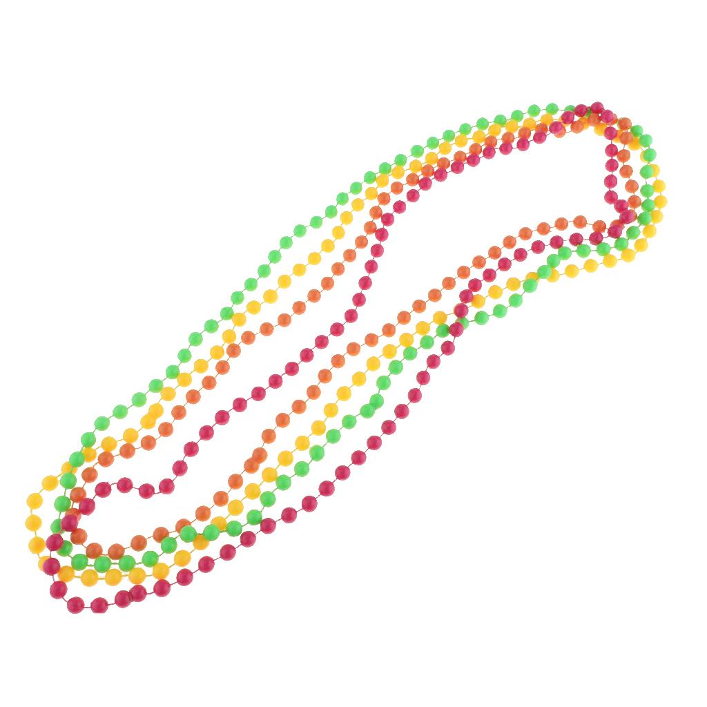 Novelty 4 Strands 1980s Party Long Plastic Neon Beads Necklace 4 In 1 Fancy Dress