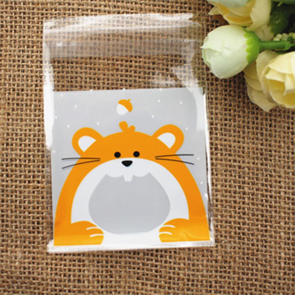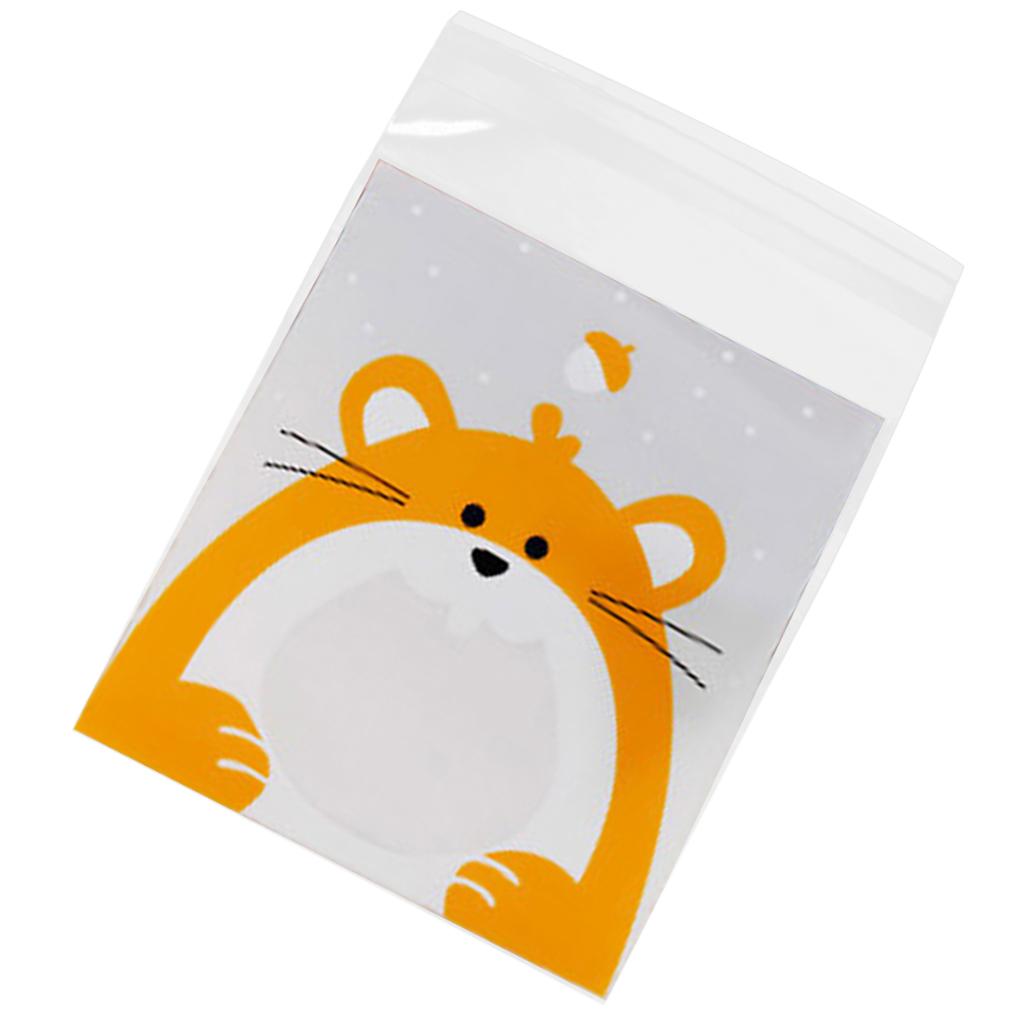 Pack of 100PCS Cute Yellow Mouse Print Pattern Charms Self-Adhesive Cookie Candy Wrapping Gift Seal Bag Party Supplies 10x10cm
