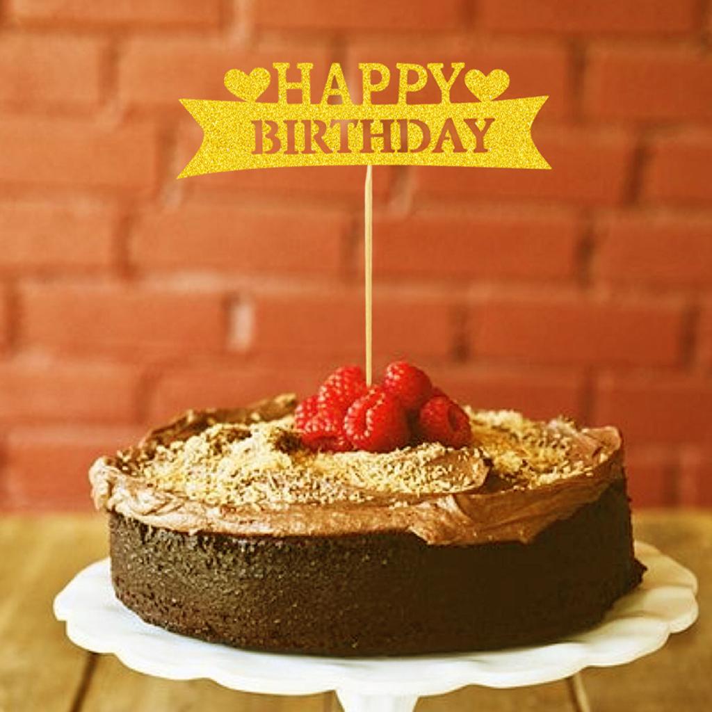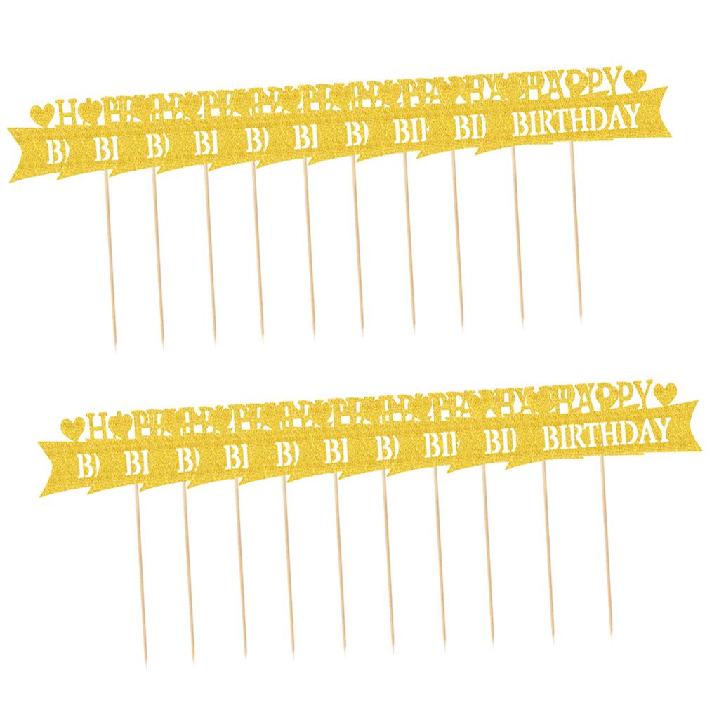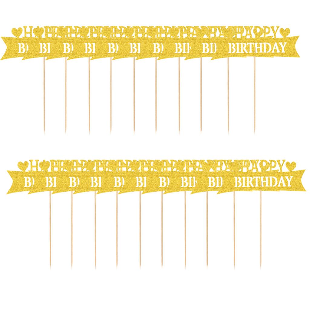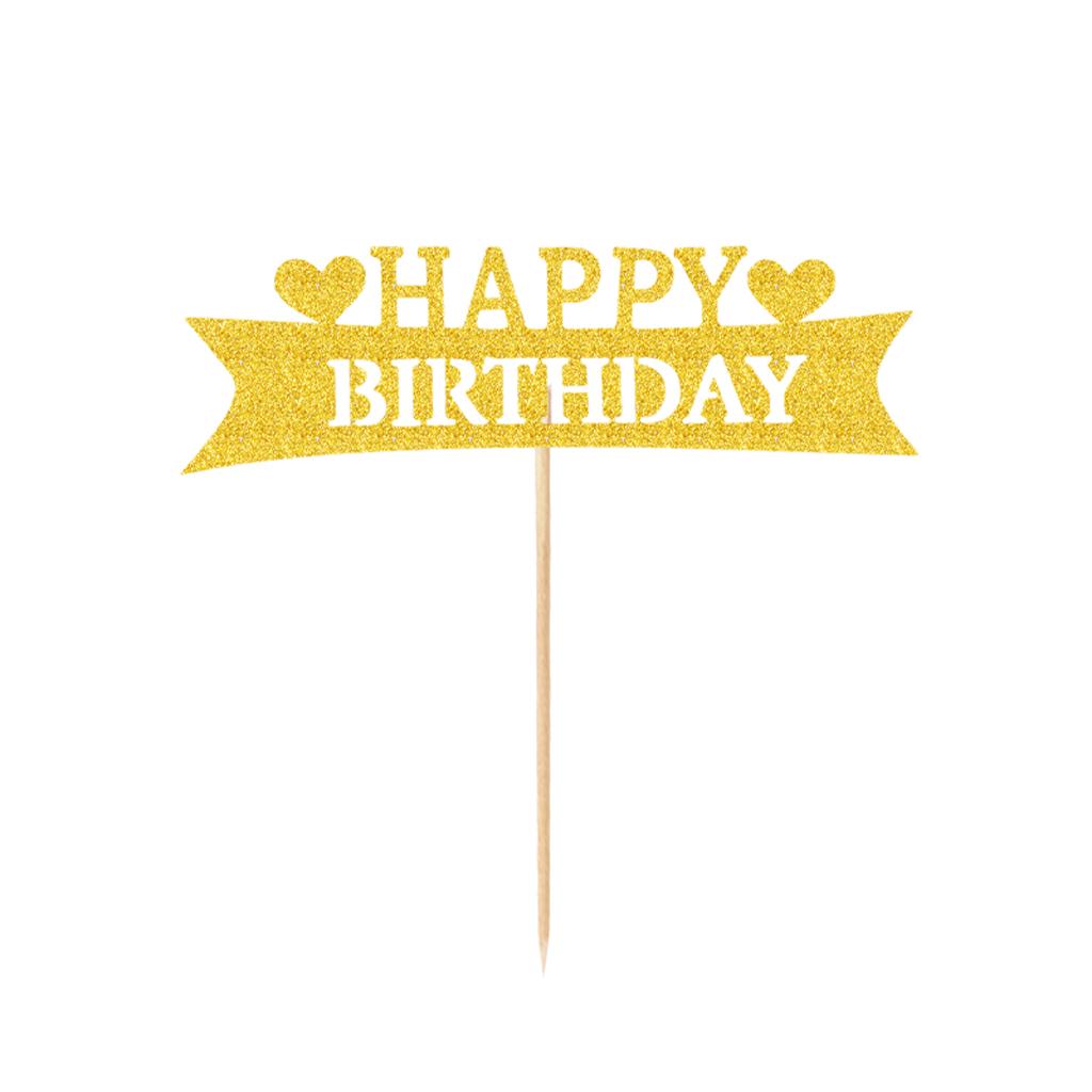Pack of 20 Glitter Paper Happy Birthday Heart Cupcake Cake Topper Birthday Celebration Party Photo Prop