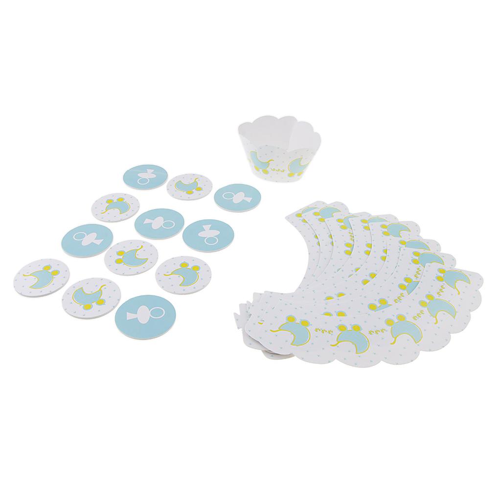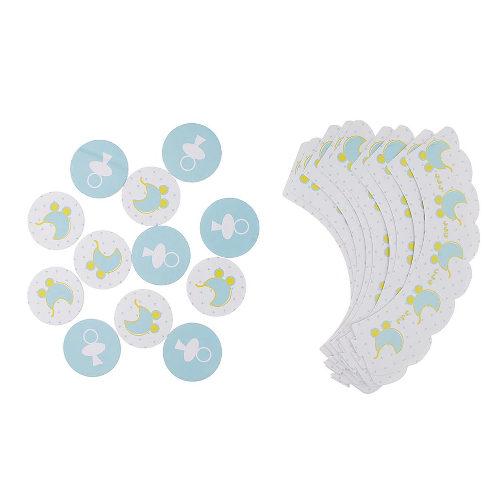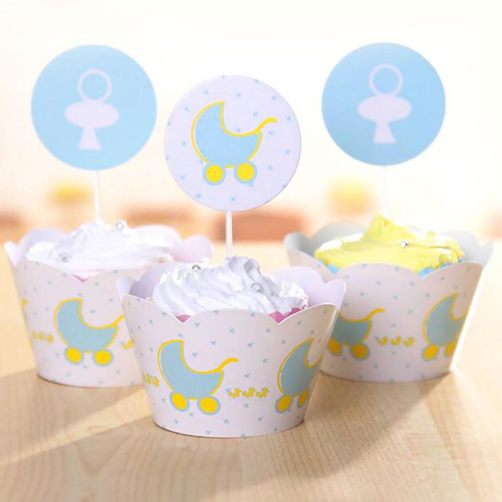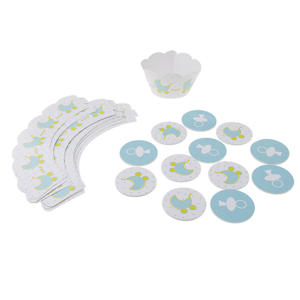 This is a fantastic decor set of capcake topper and cupcake wrappers in baby carriage and pacifier style.