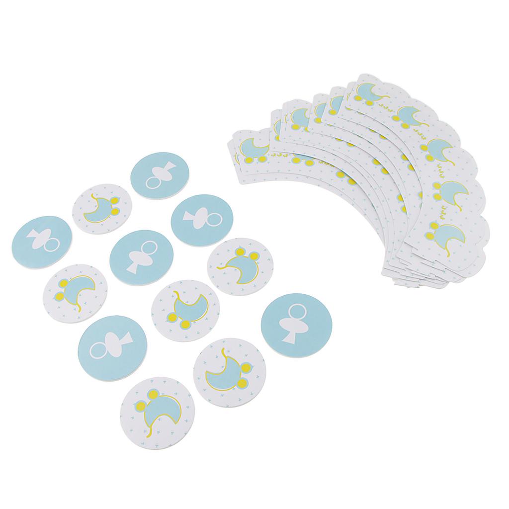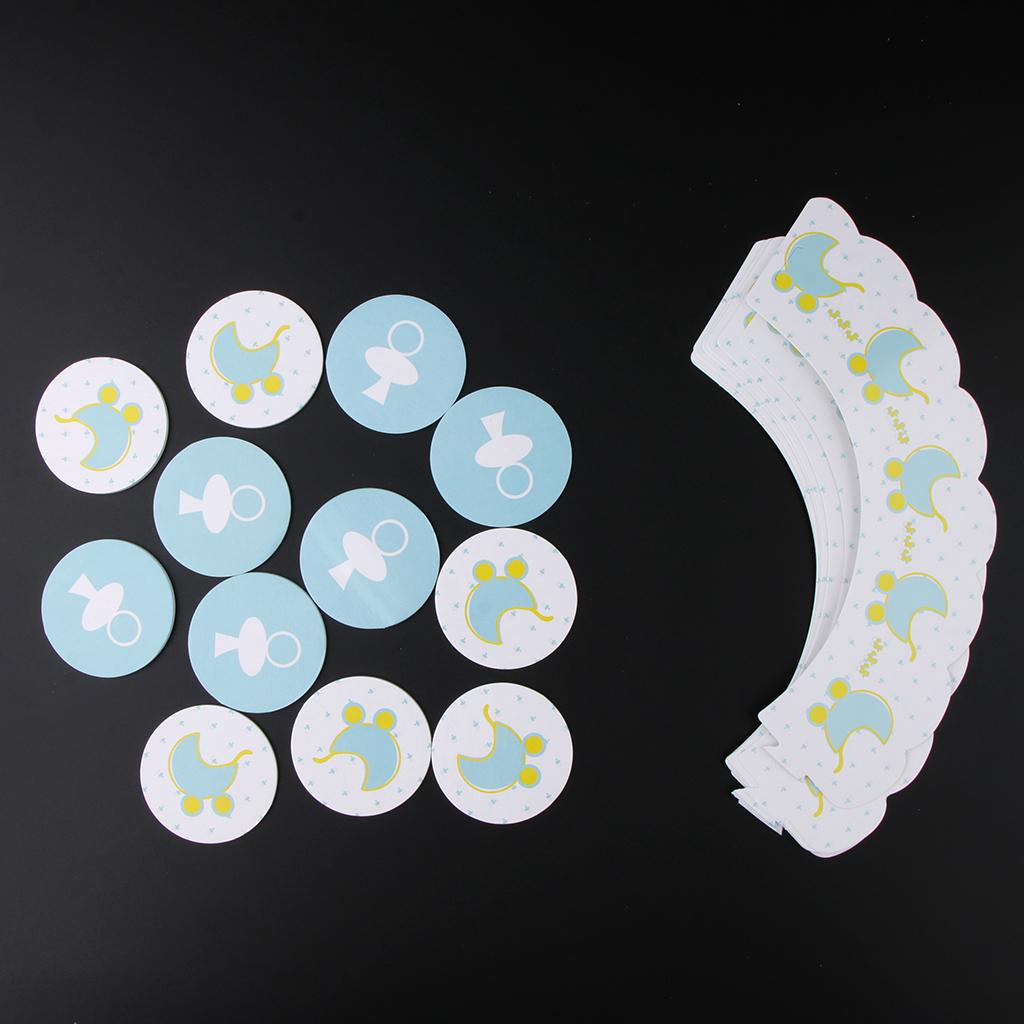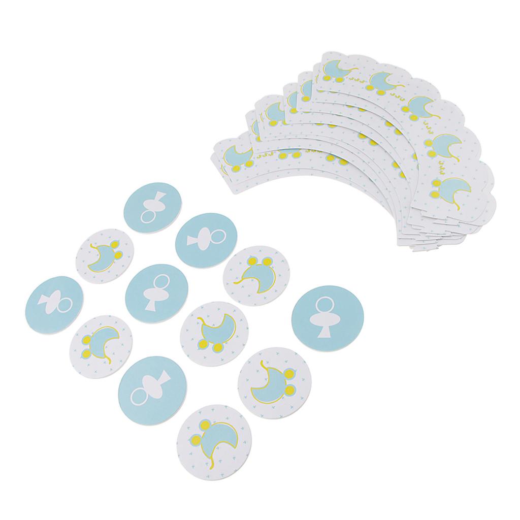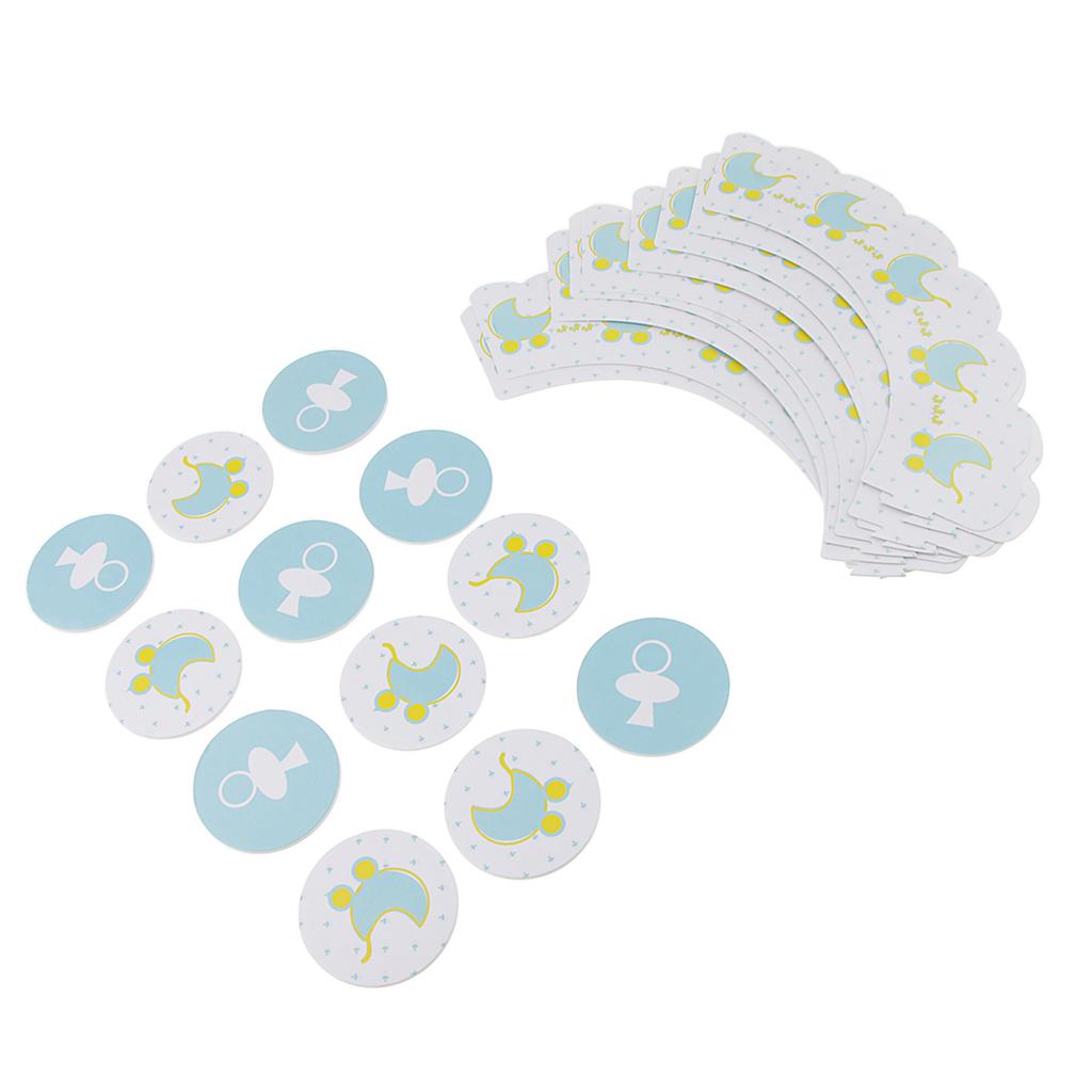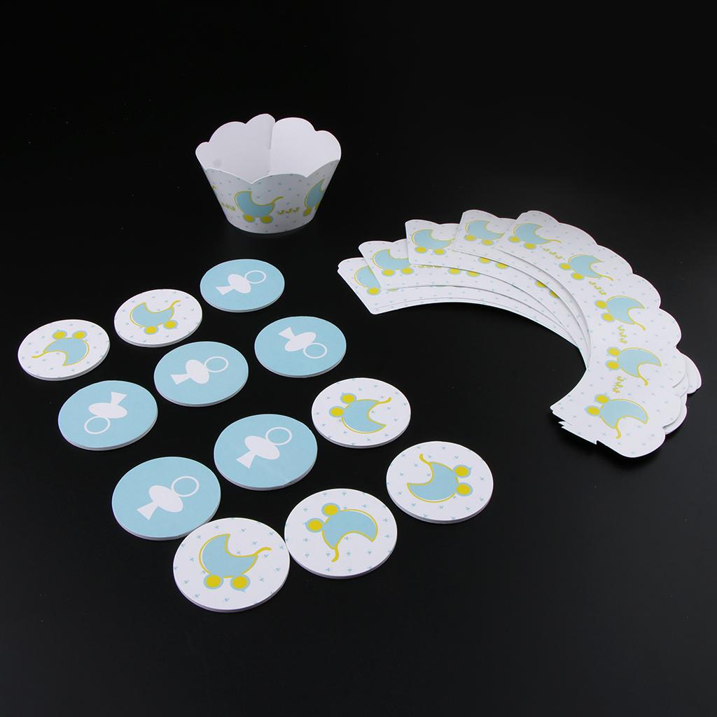 This is a fantastic decor set of capcake topper and cupcake wrappers in baby carriage and pacifier style.