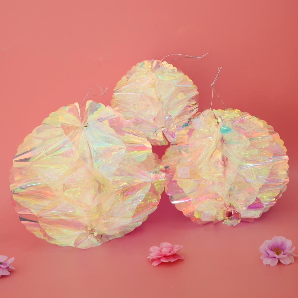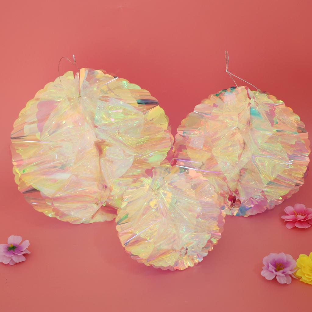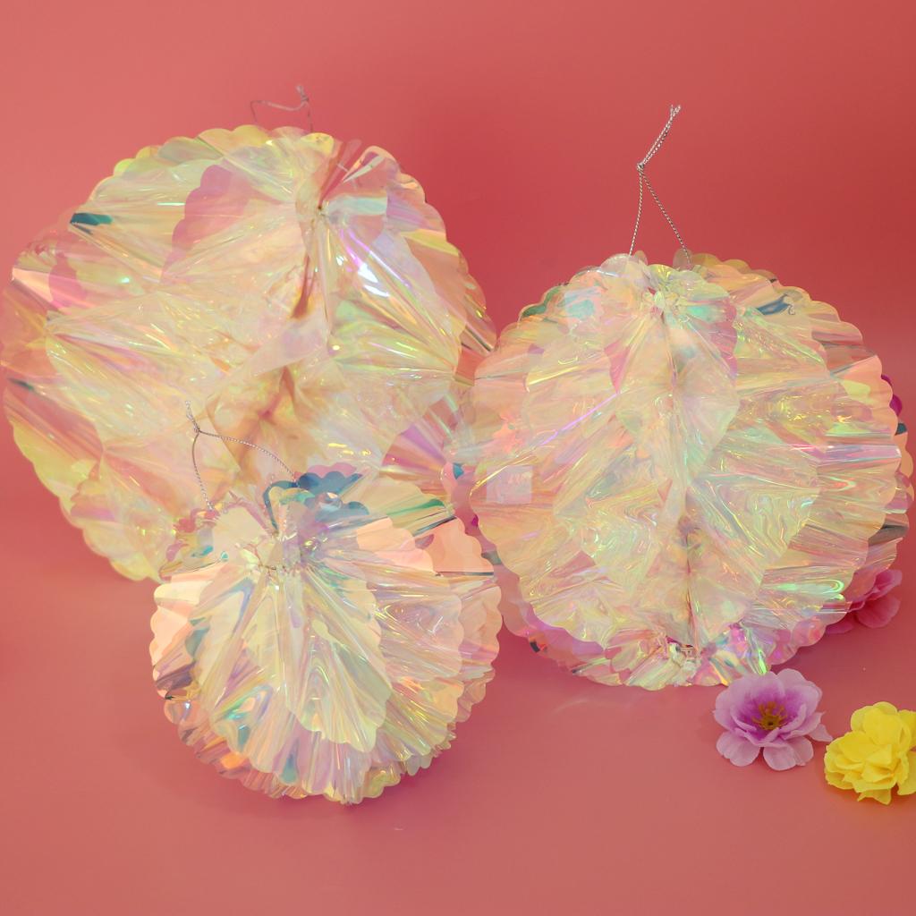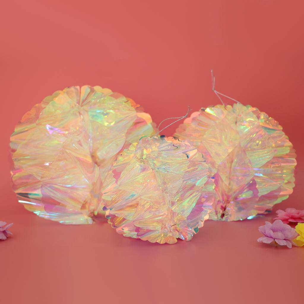 Rainbow film gradient plastic flower ball pendant, very beautiful, like a crystal ball.