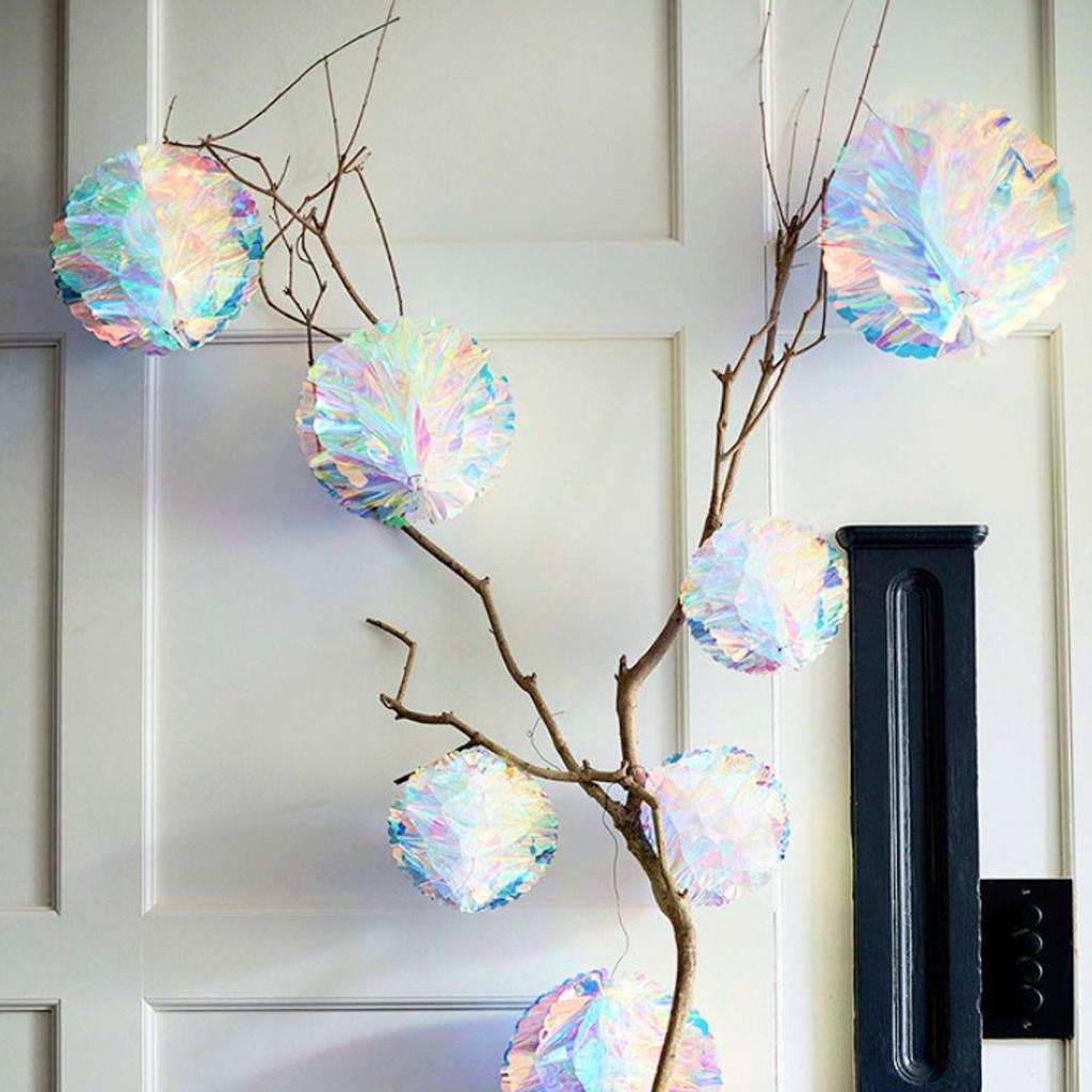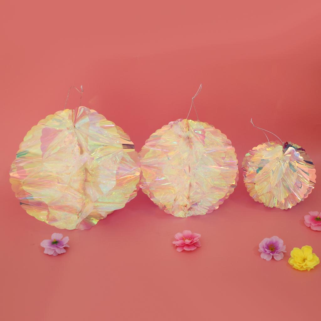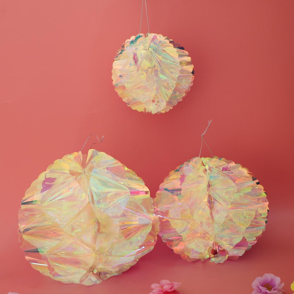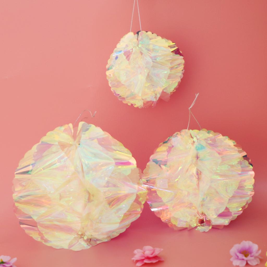 Rainbow film gradient plastic flower ball pendant, very beautiful, like a crystal ball.