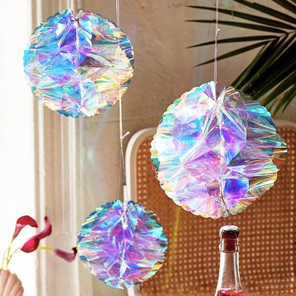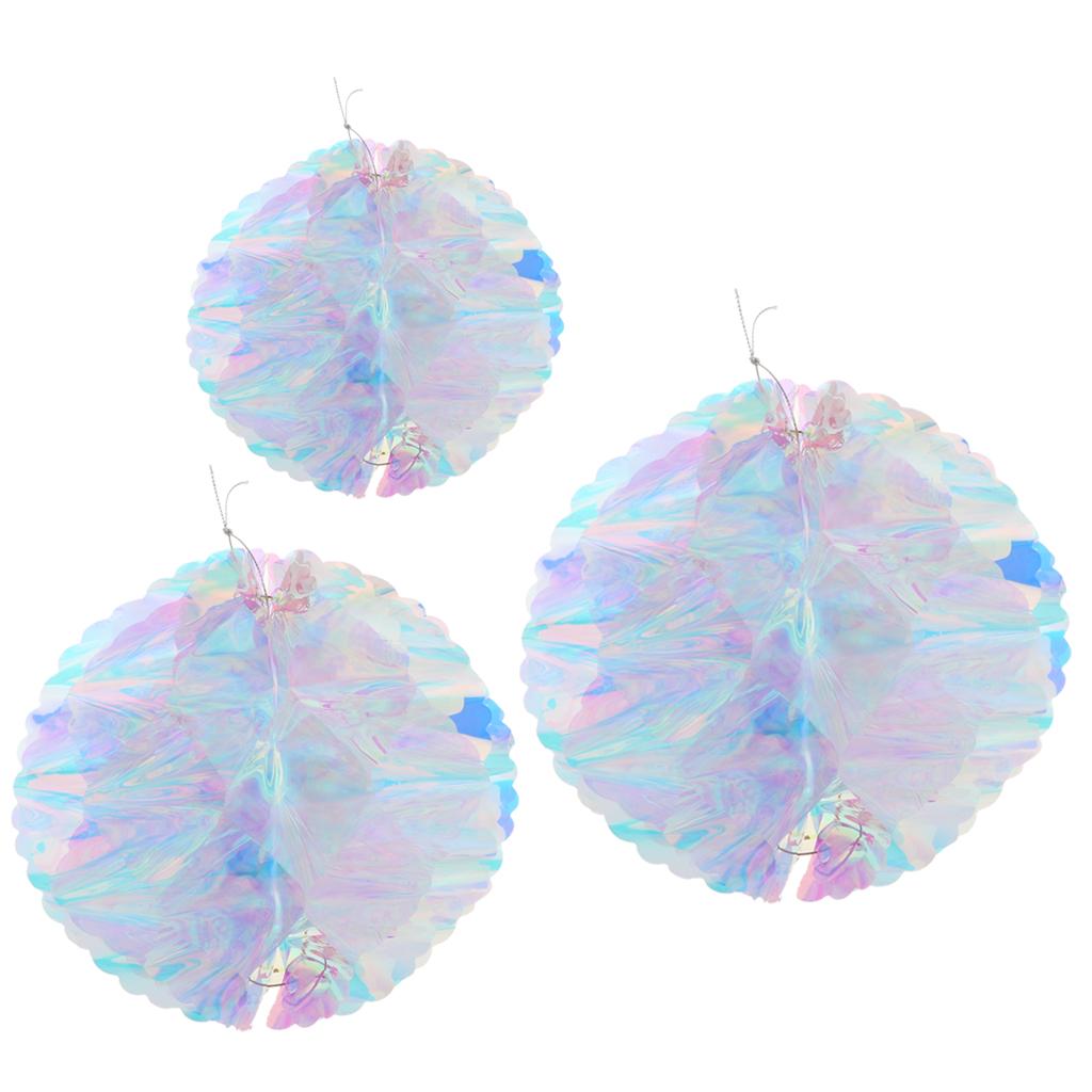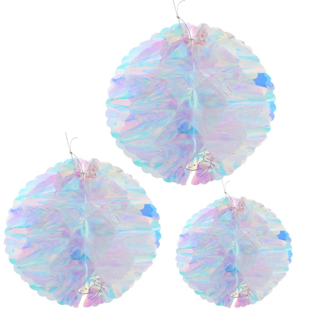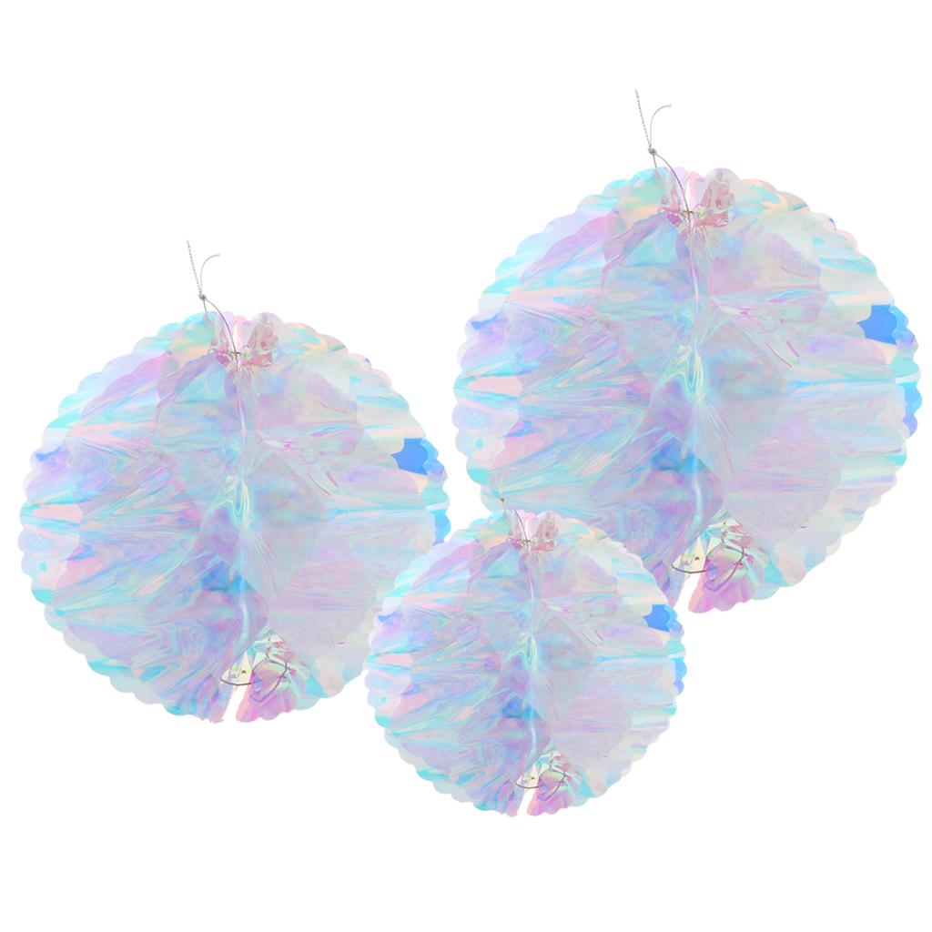 Pack of 3 Rainbow Film Foil Gradient Hanging Honeycomb Flower Ball Wedding Venue Decor