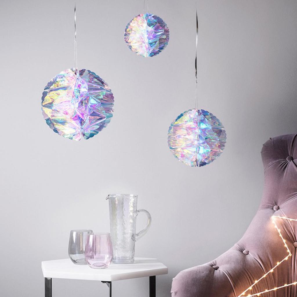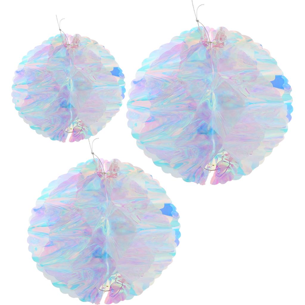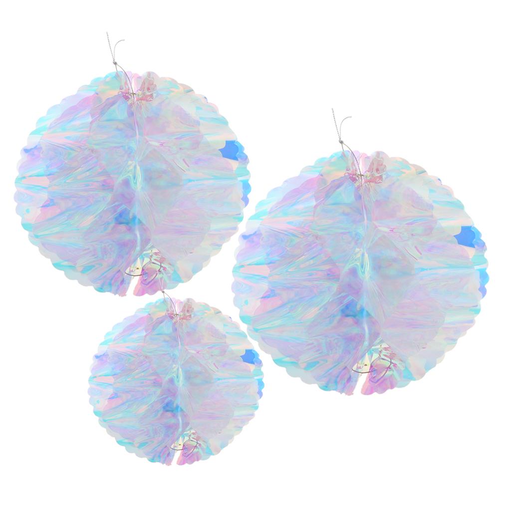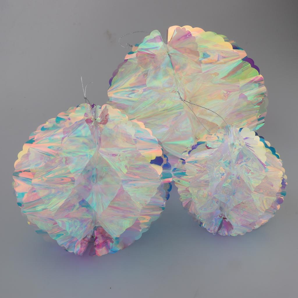 Pack of 3 Rainbow Film Foil Gradient Hanging Honeycomb Flower Ball Wedding Venue Decor