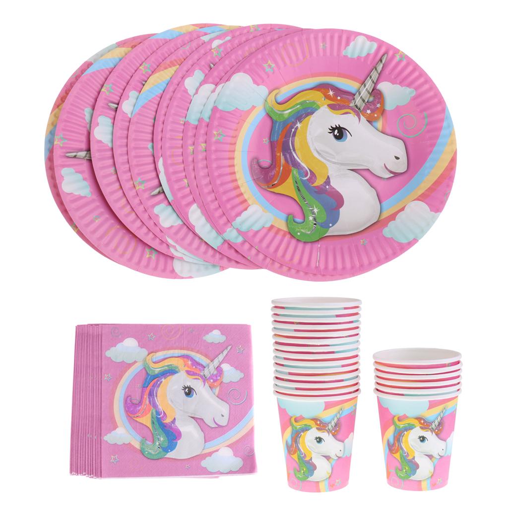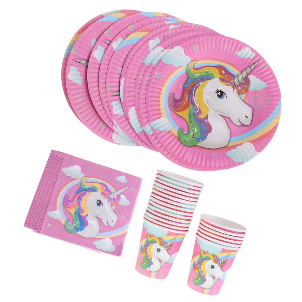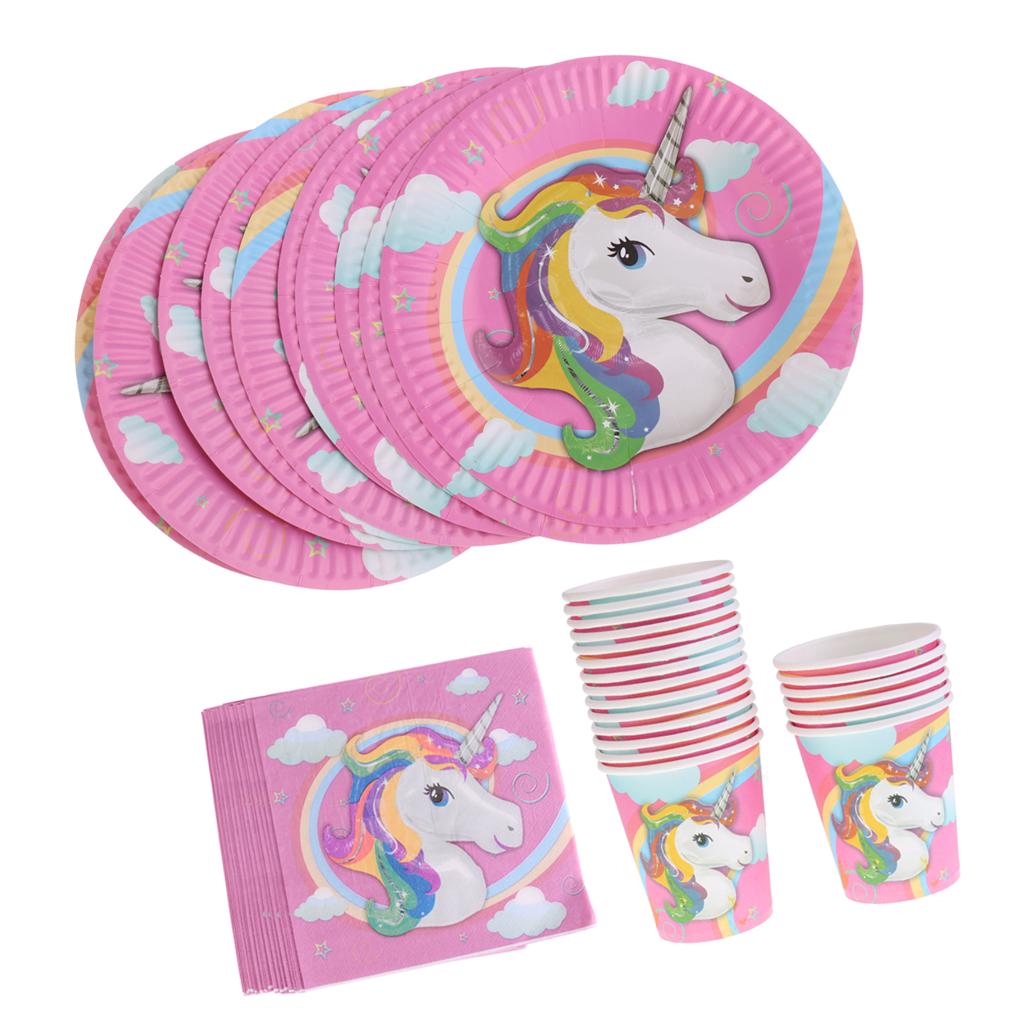 Pack of 40pcs Paper Napkins Unicorn Lunch Plates Cups Tableware Wedding Baby Shower Events Catering Accessories