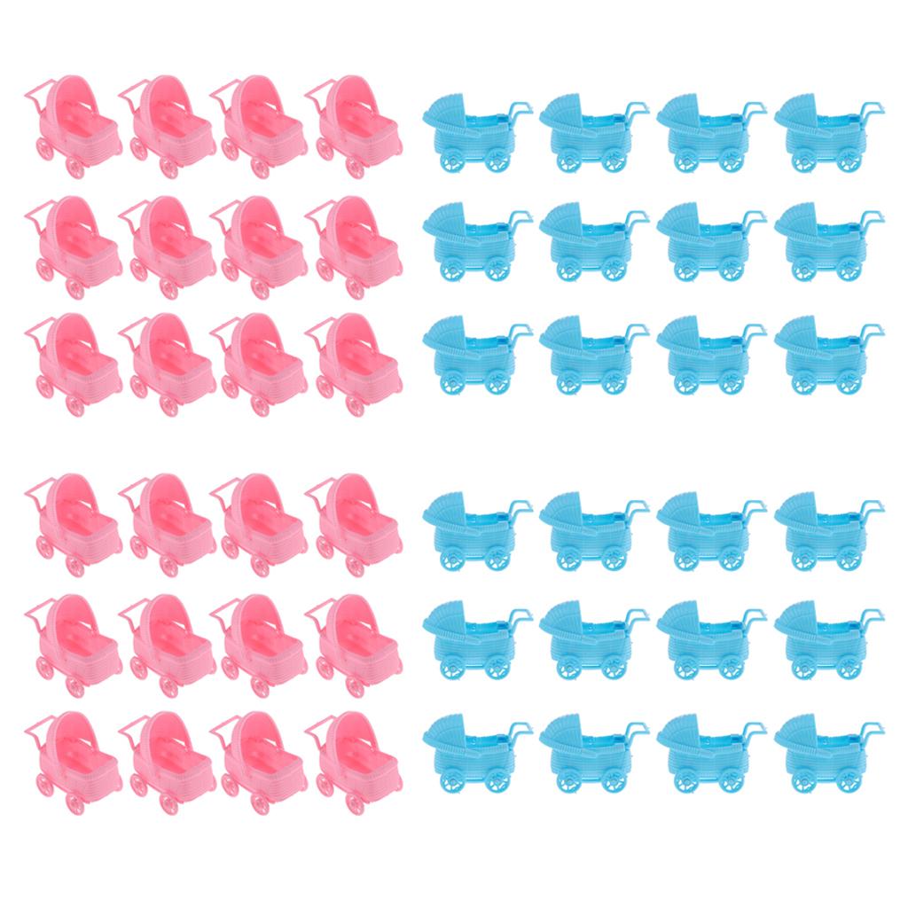 Pack of 48 Lovely Plastic Baby Carriage Baby Shower Decoration Party Favor Pink+Blue
