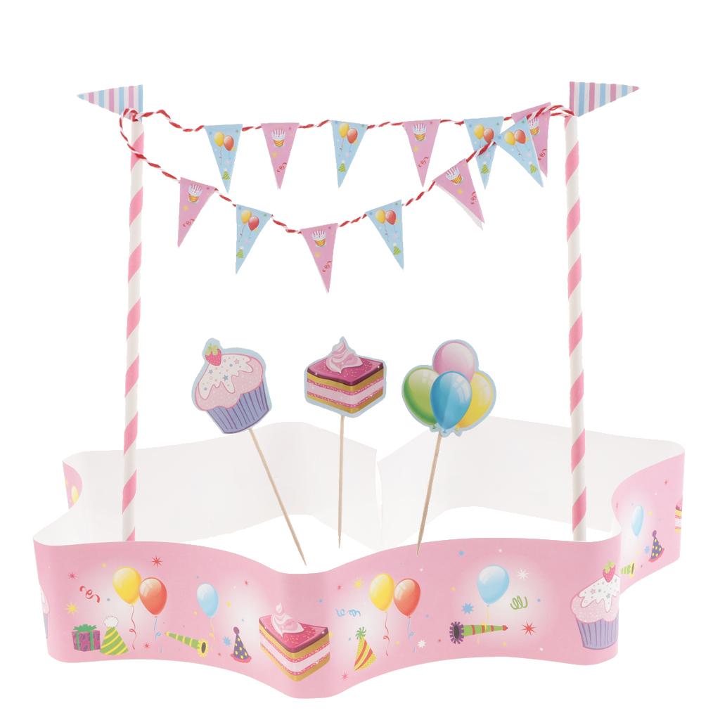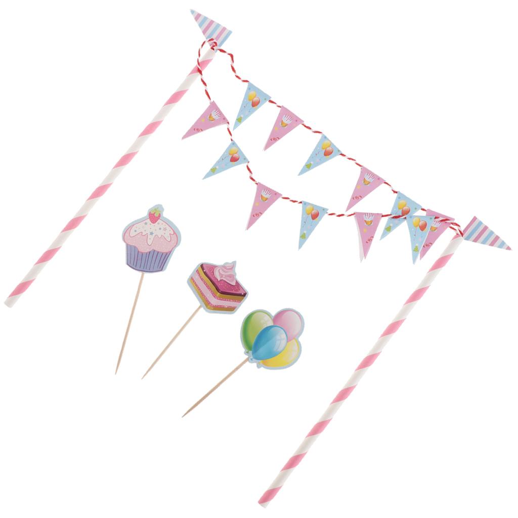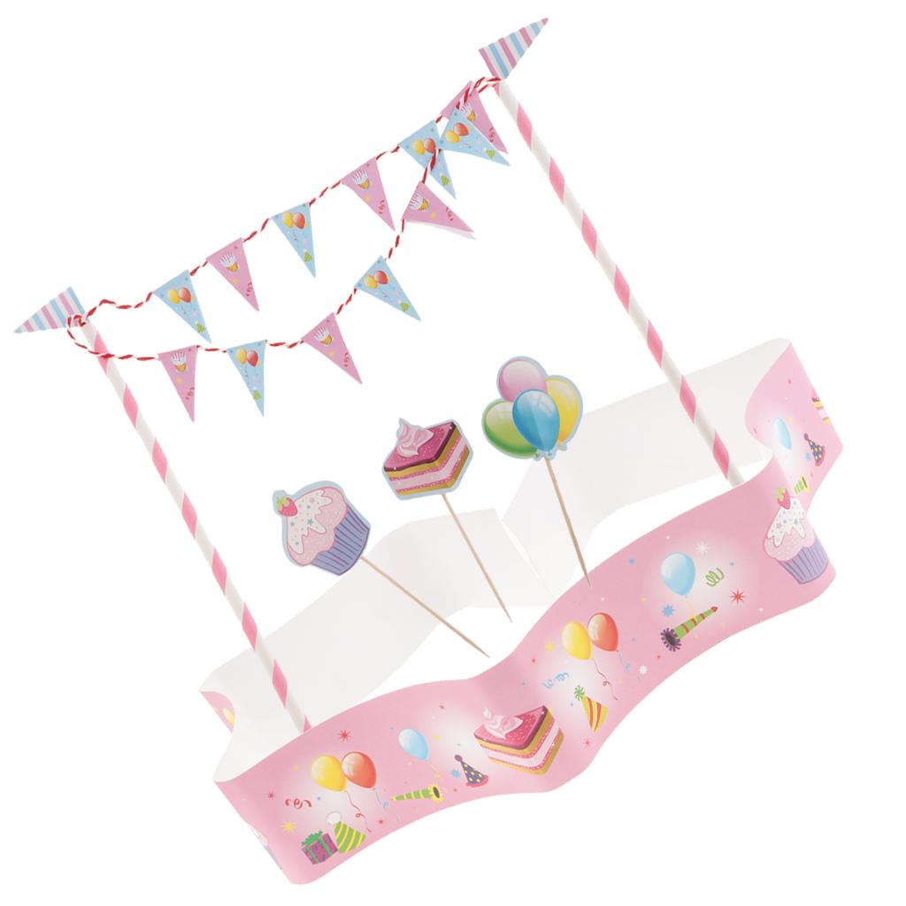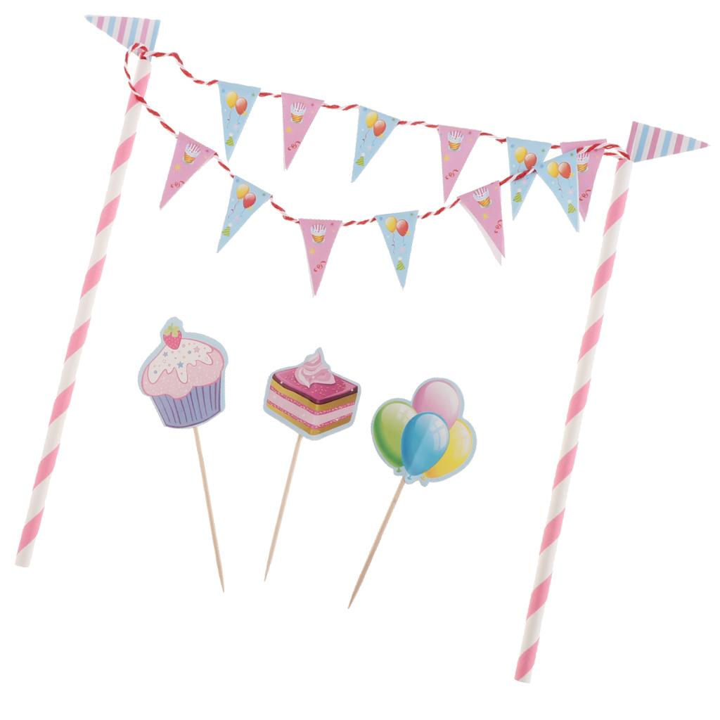 This is a set of cake decoration, which includes 1 piece cake banner, 4 pieces cupcake toothpicks and 1 pieces cake wrapper.