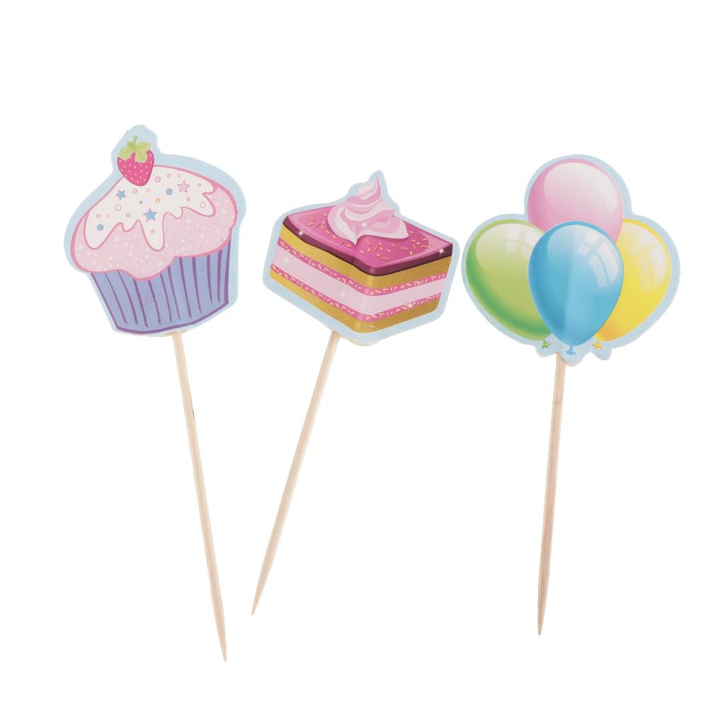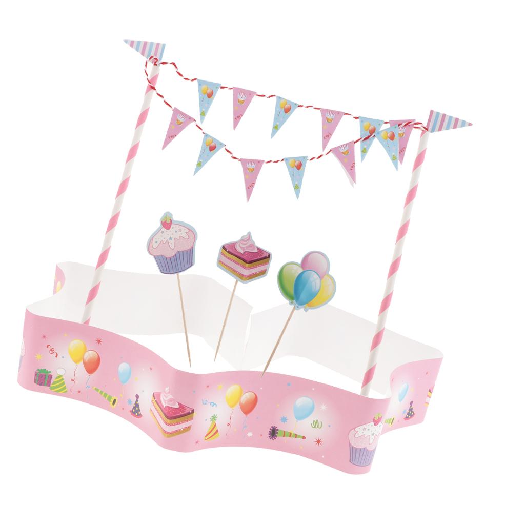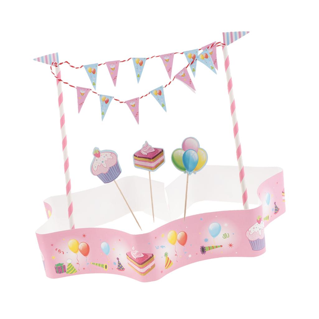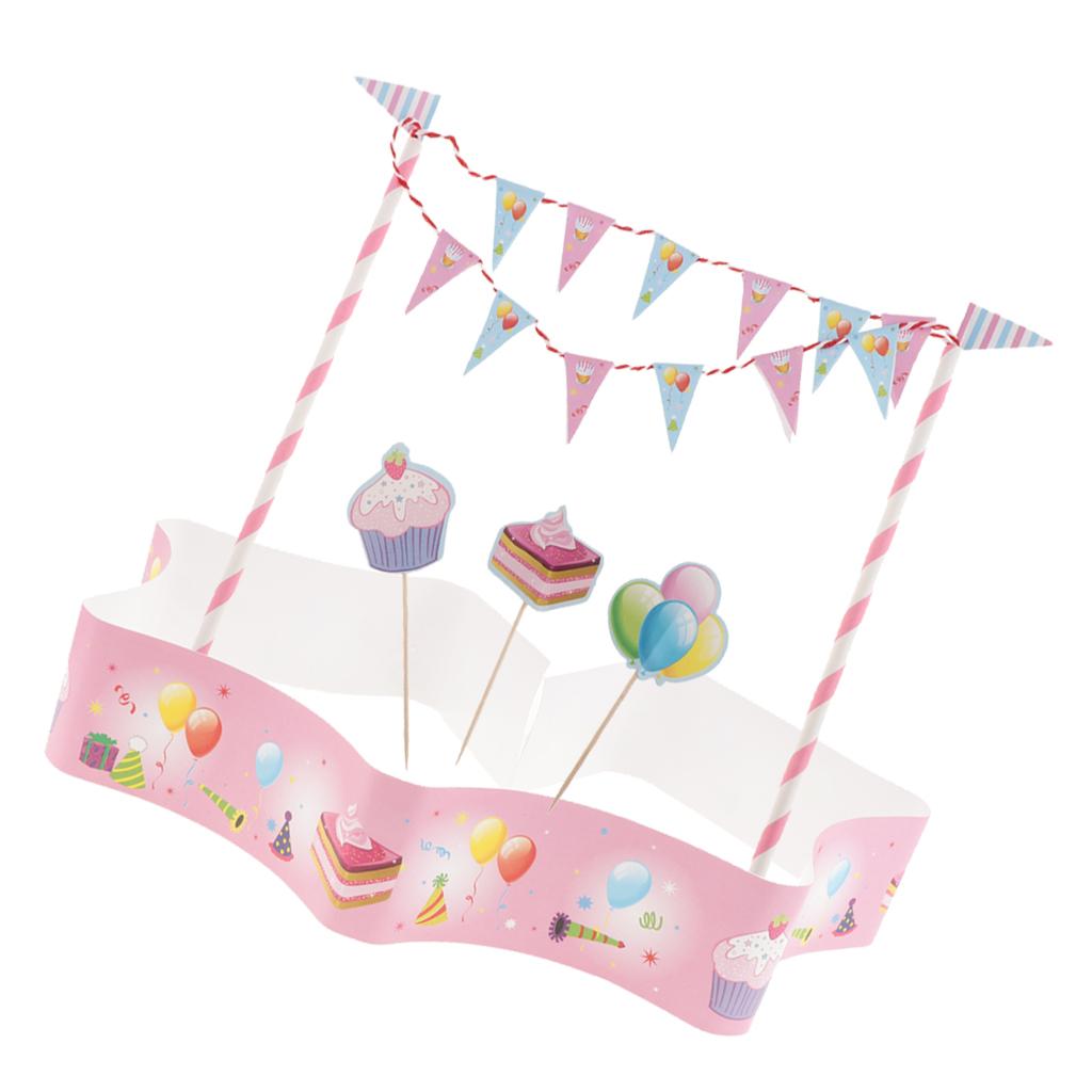 This is a set of cake decoration, which includes 1 piece cake banner, 4 pieces cupcake toothpicks and 1 pieces cake wrapper.