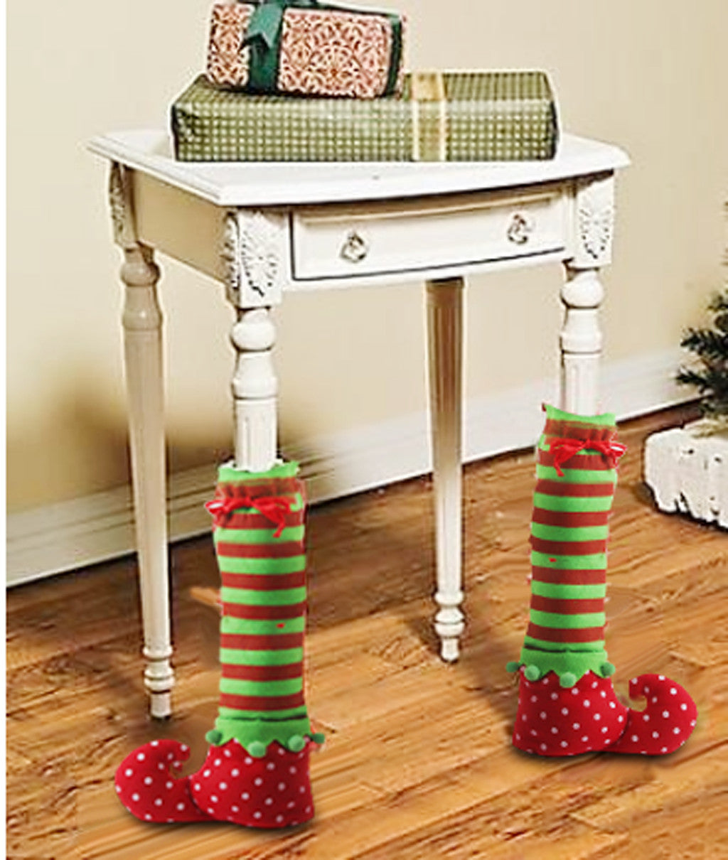 Add a touch of whimsy to your Christmas decorations with these great table leg covers. Makes the legs of your table look like Elves feet! . Made of felt to accommodate most table legs.