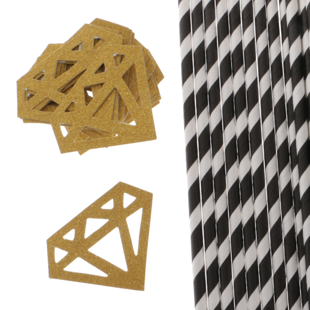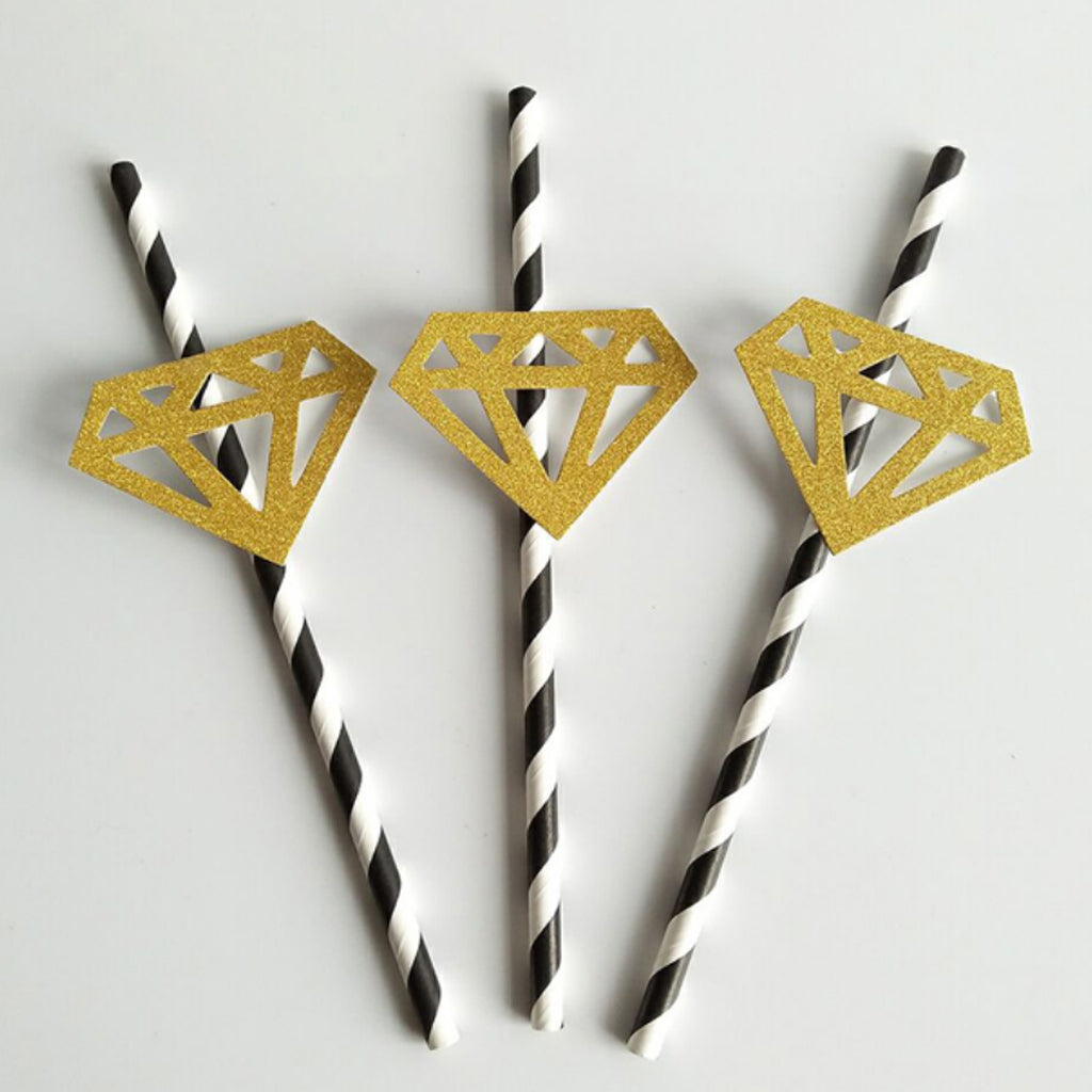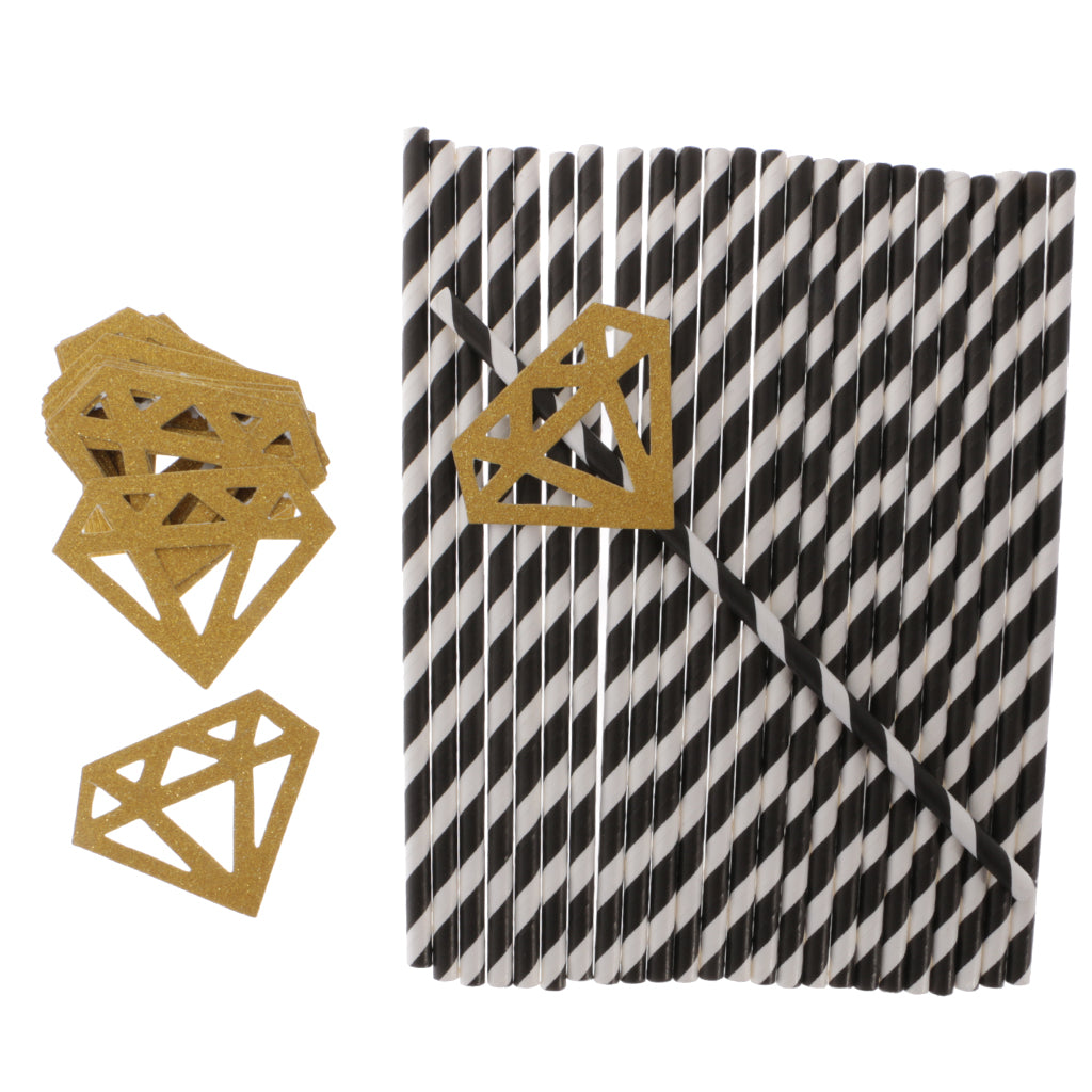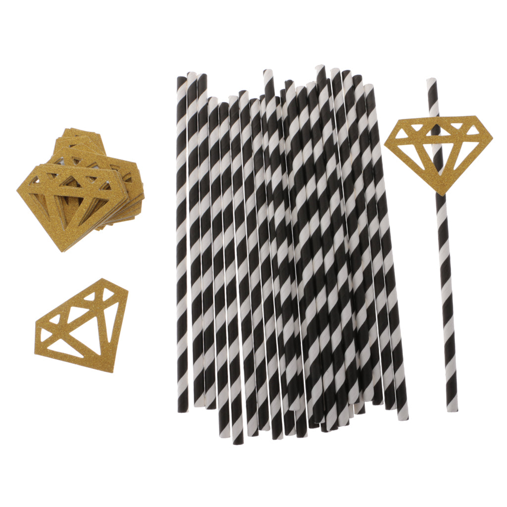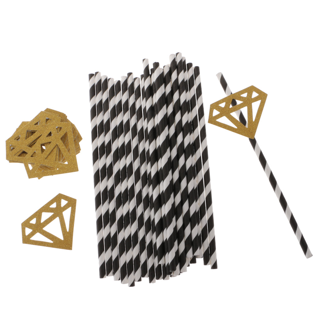 Striped style drinking straws,with glitter diamond decoration