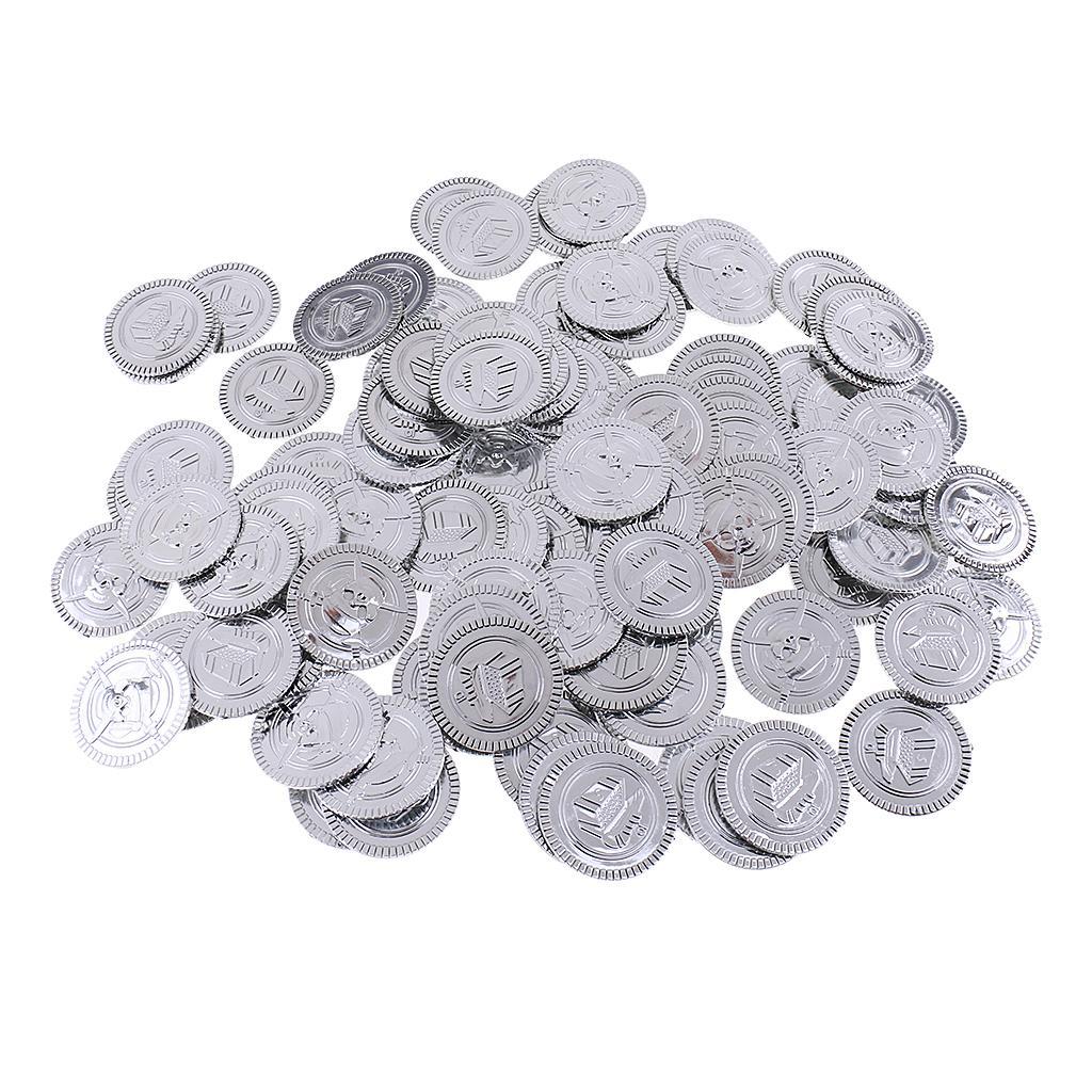 Plastic Treasure Coin Silver Pirate Chest Pinata Money Play Coin for Kids