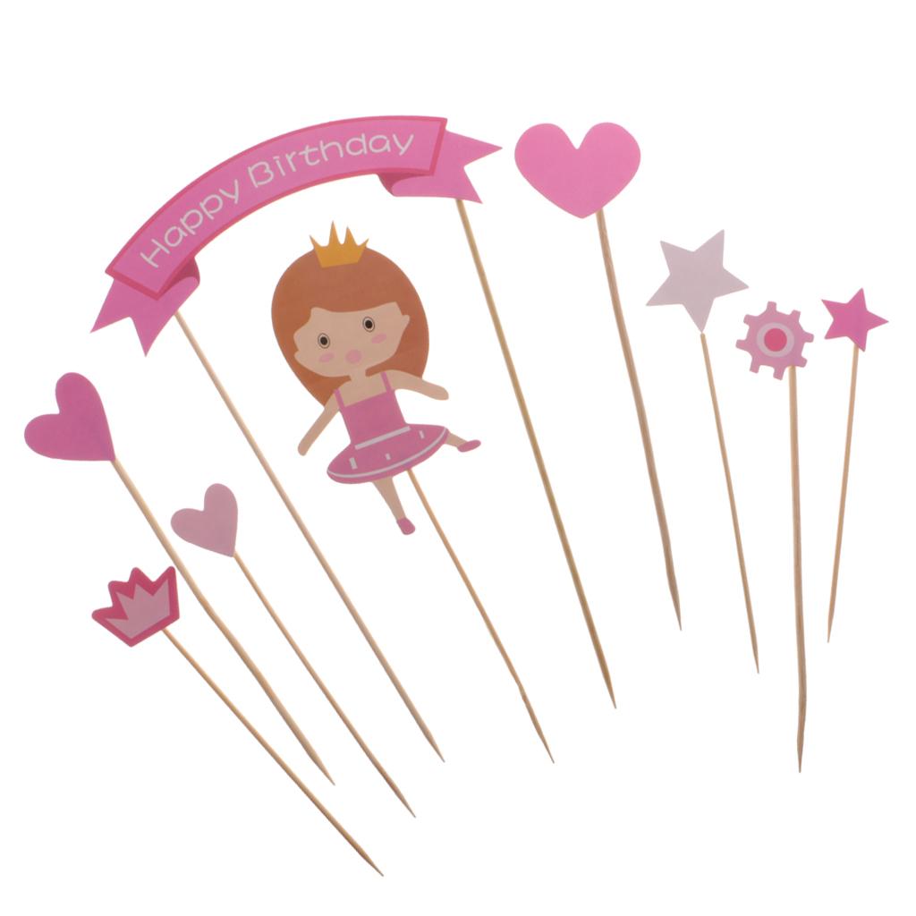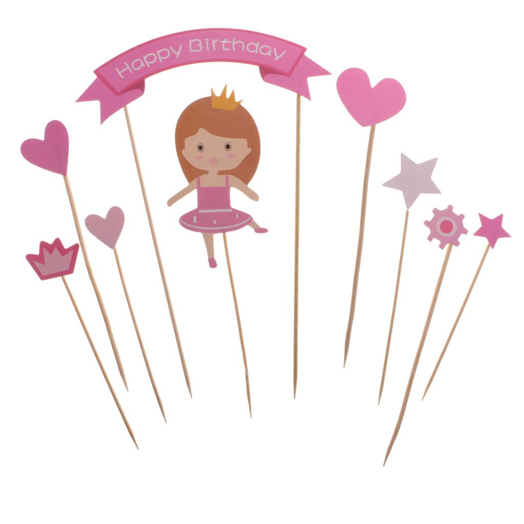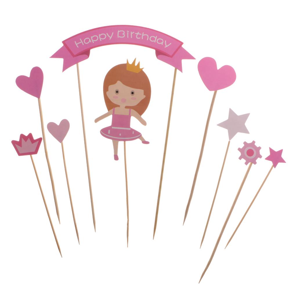 Lovely pink baby girl Happy Birthday cake toppers picks set