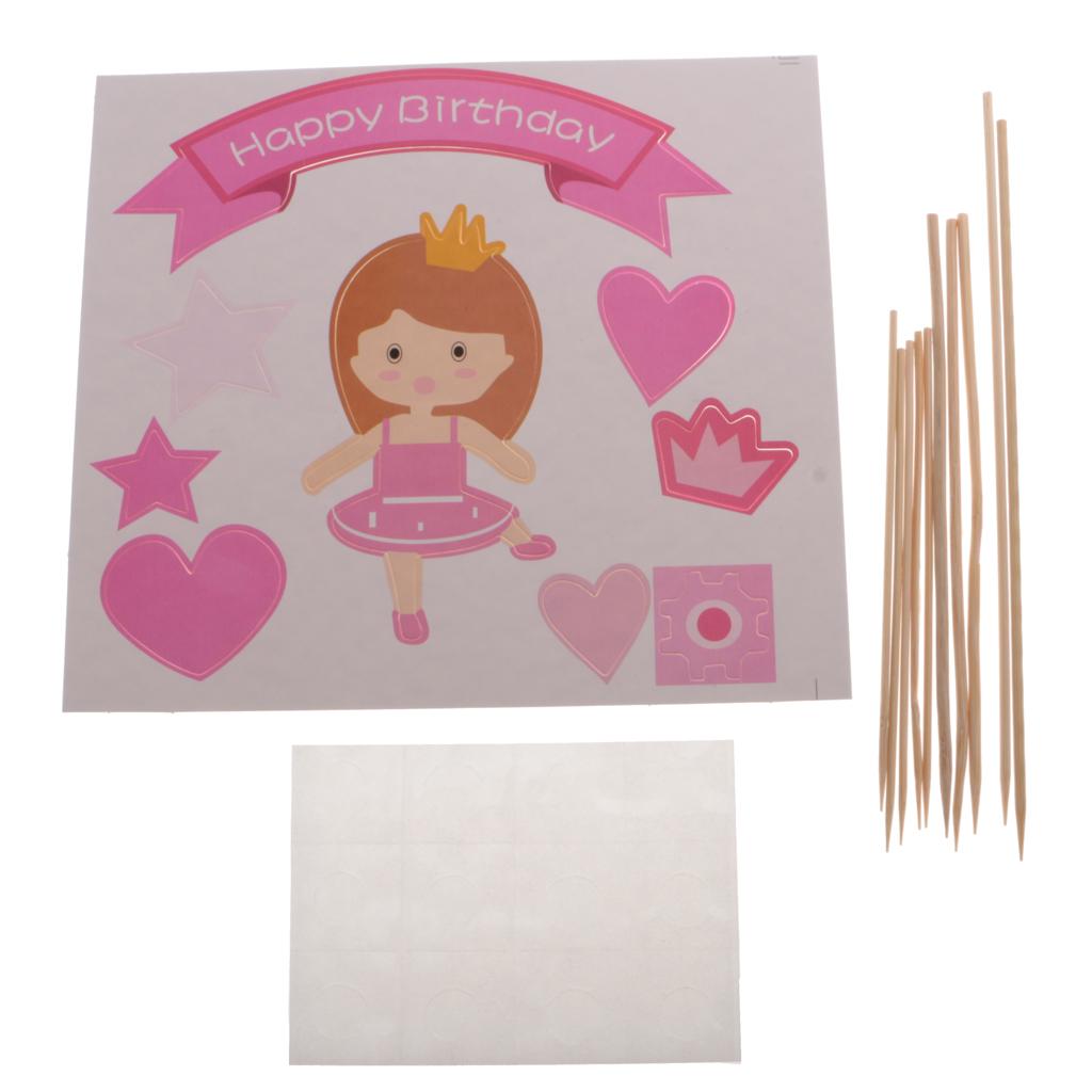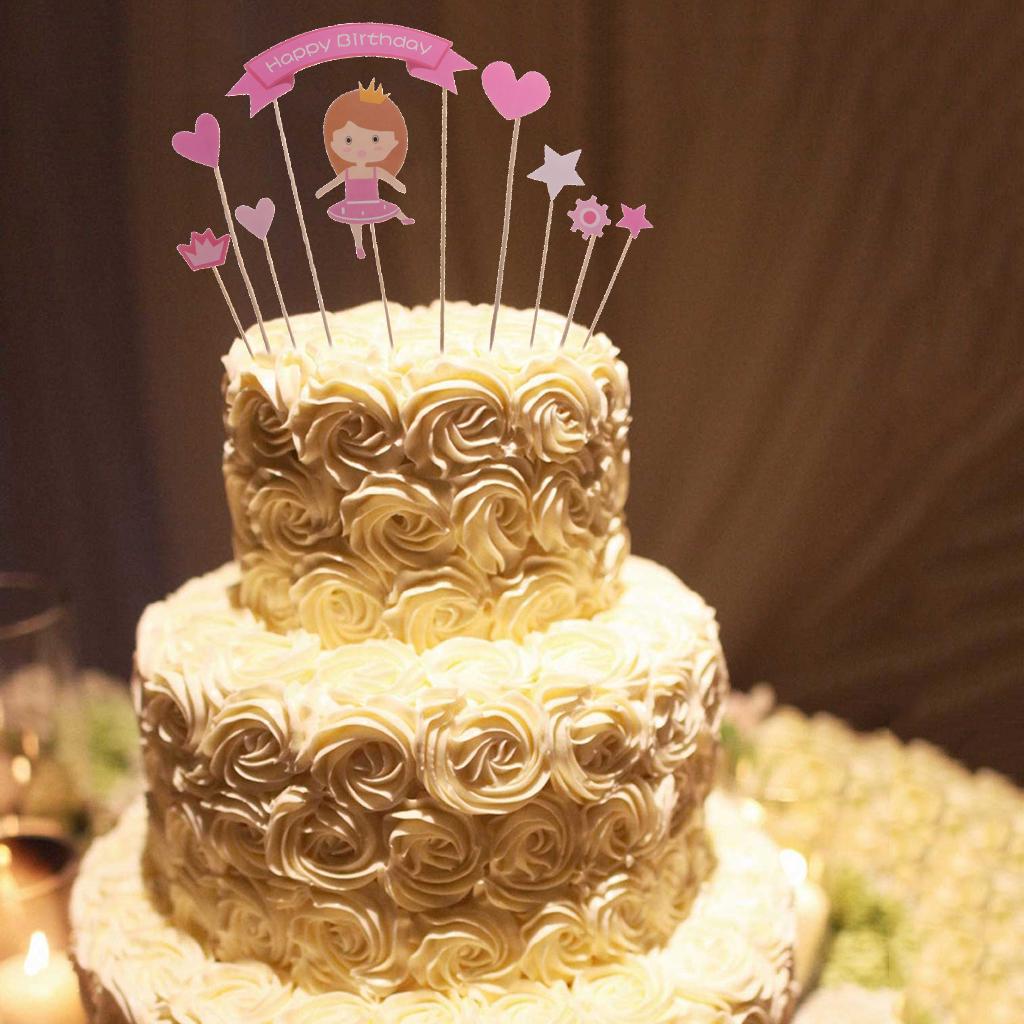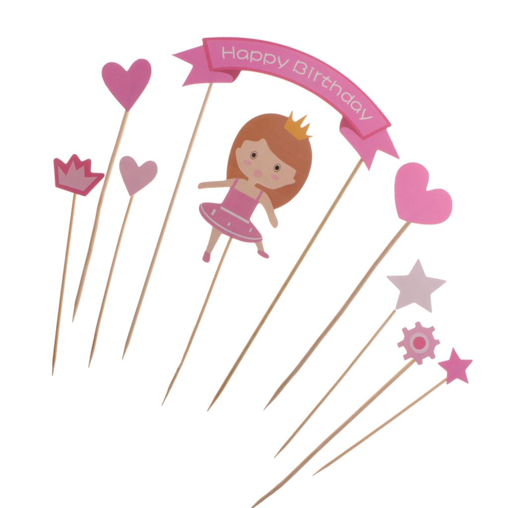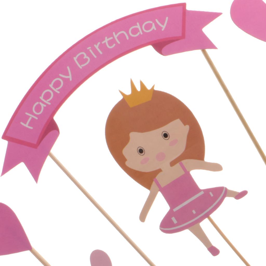 Lovely pink baby girl Happy Birthday cake toppers picks set
