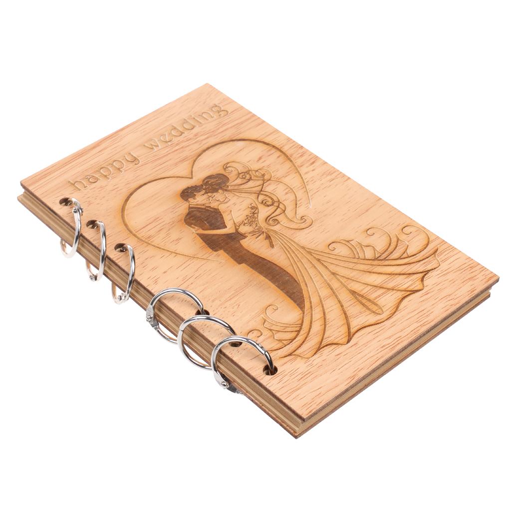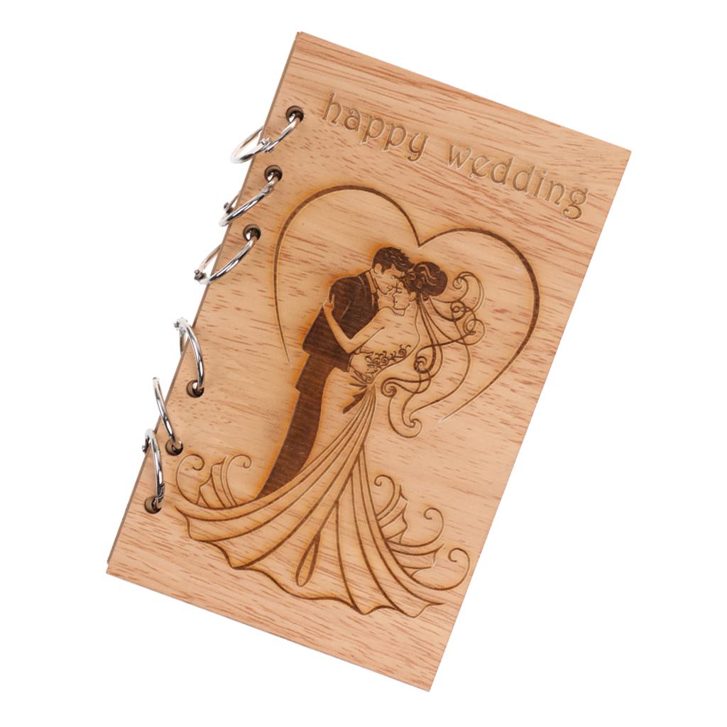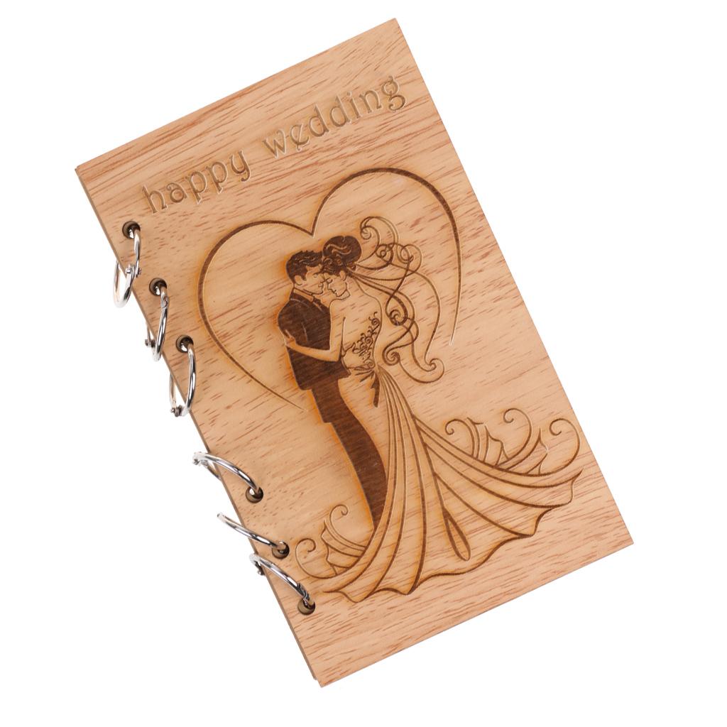 • Rustic style guestbook or notebook with kraft paper inner sheet, happy wedding letters and sweet bride and groom picture.