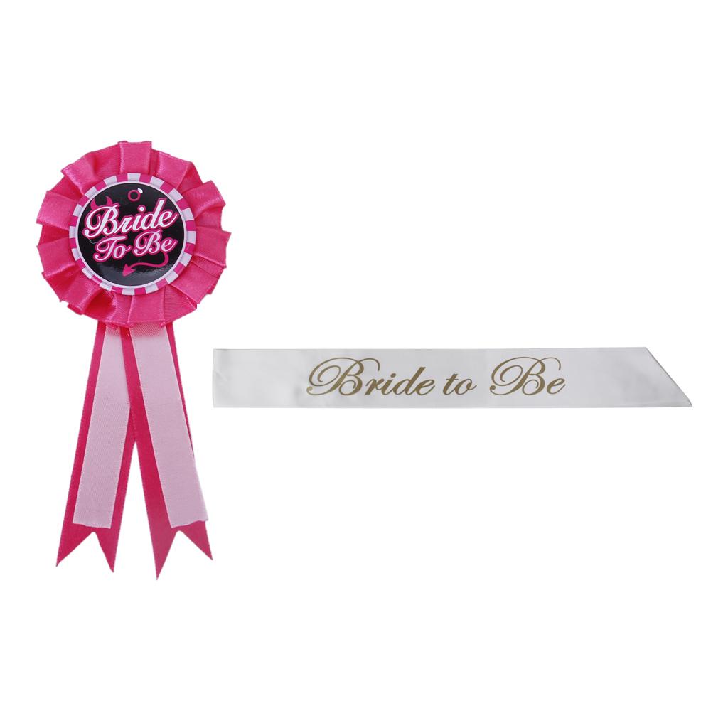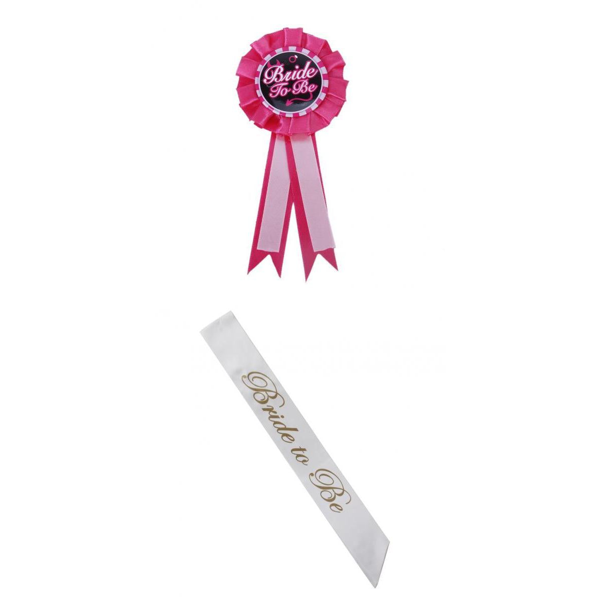 Pretty badge rosette with "Bride To Be" writting and white sash