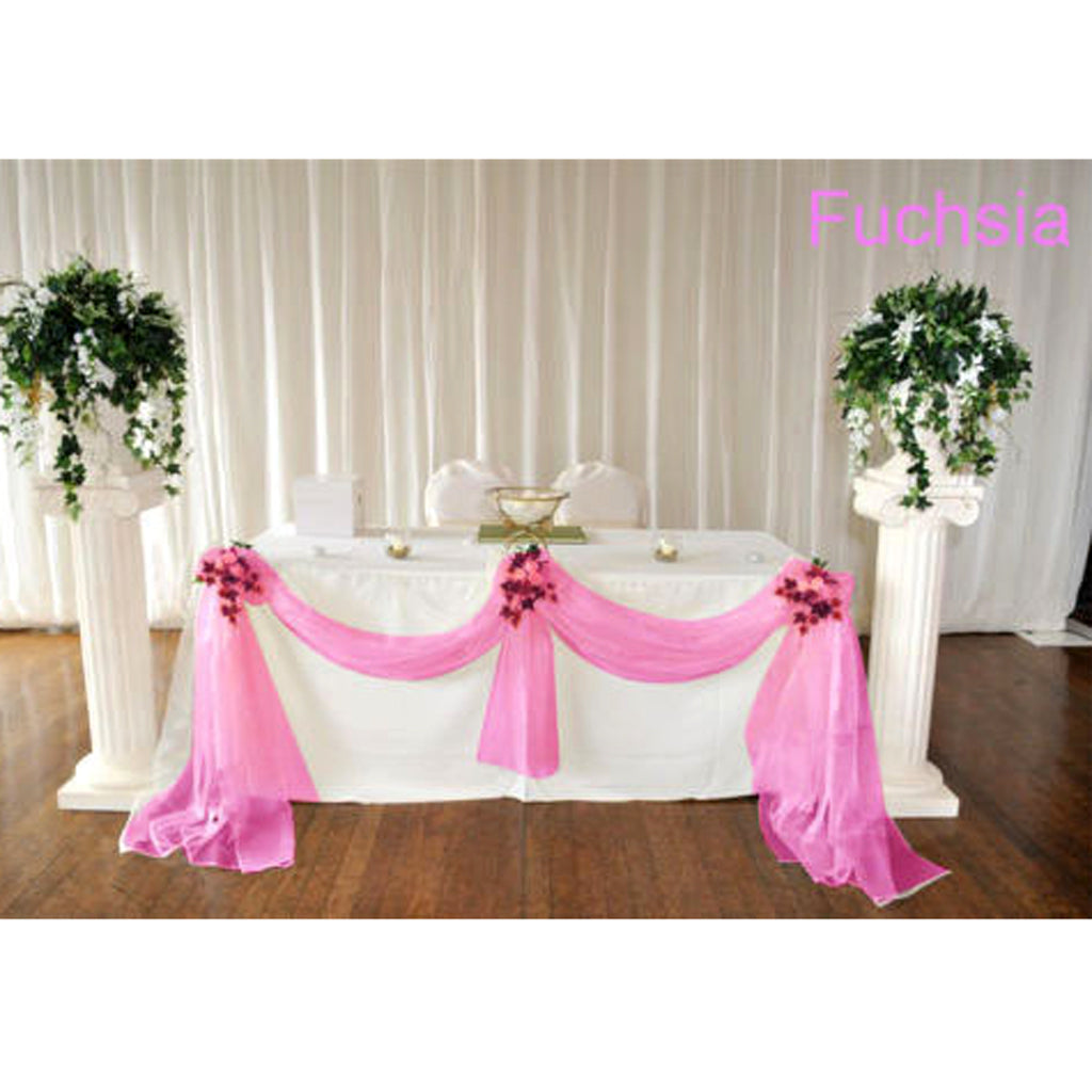 Sheer Organza Fabric Bowknot Tulle Party Wedding Table Runner fuchsia