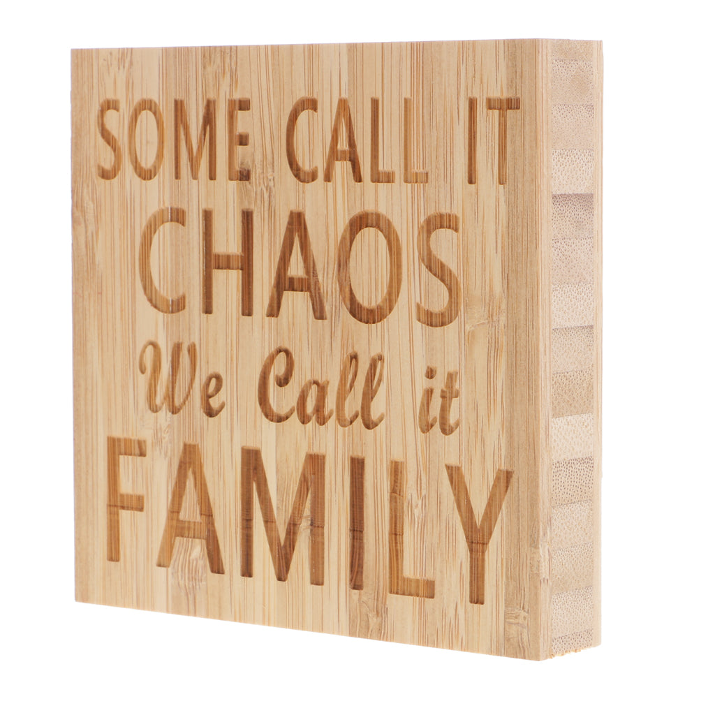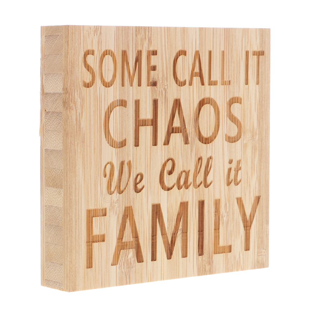 With the words printed- SOME CALL IT CHAOS we call it FAMILY