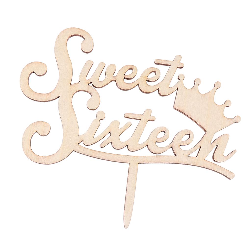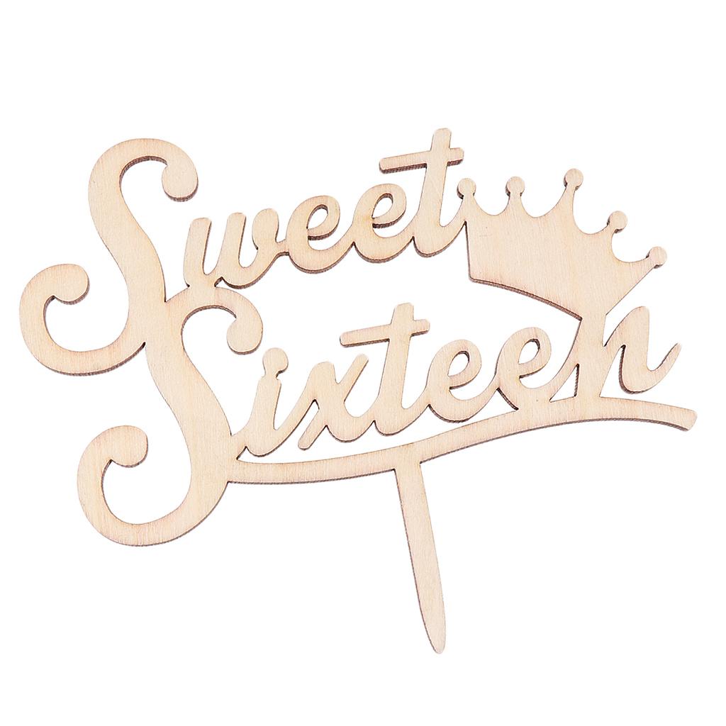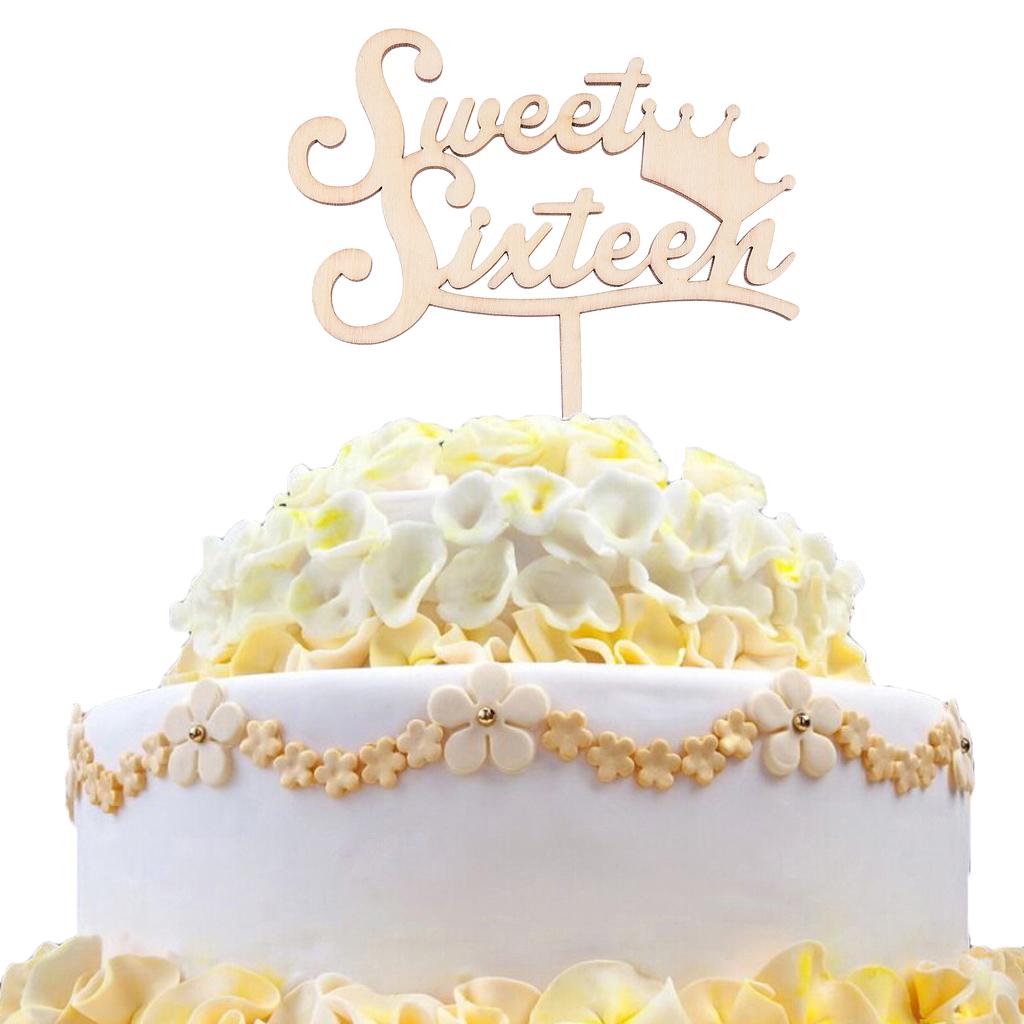 Sweet Sixteen Cake Topper Happy 16th Birthday Wooden Rustic Cake Decoration