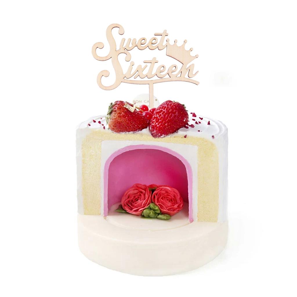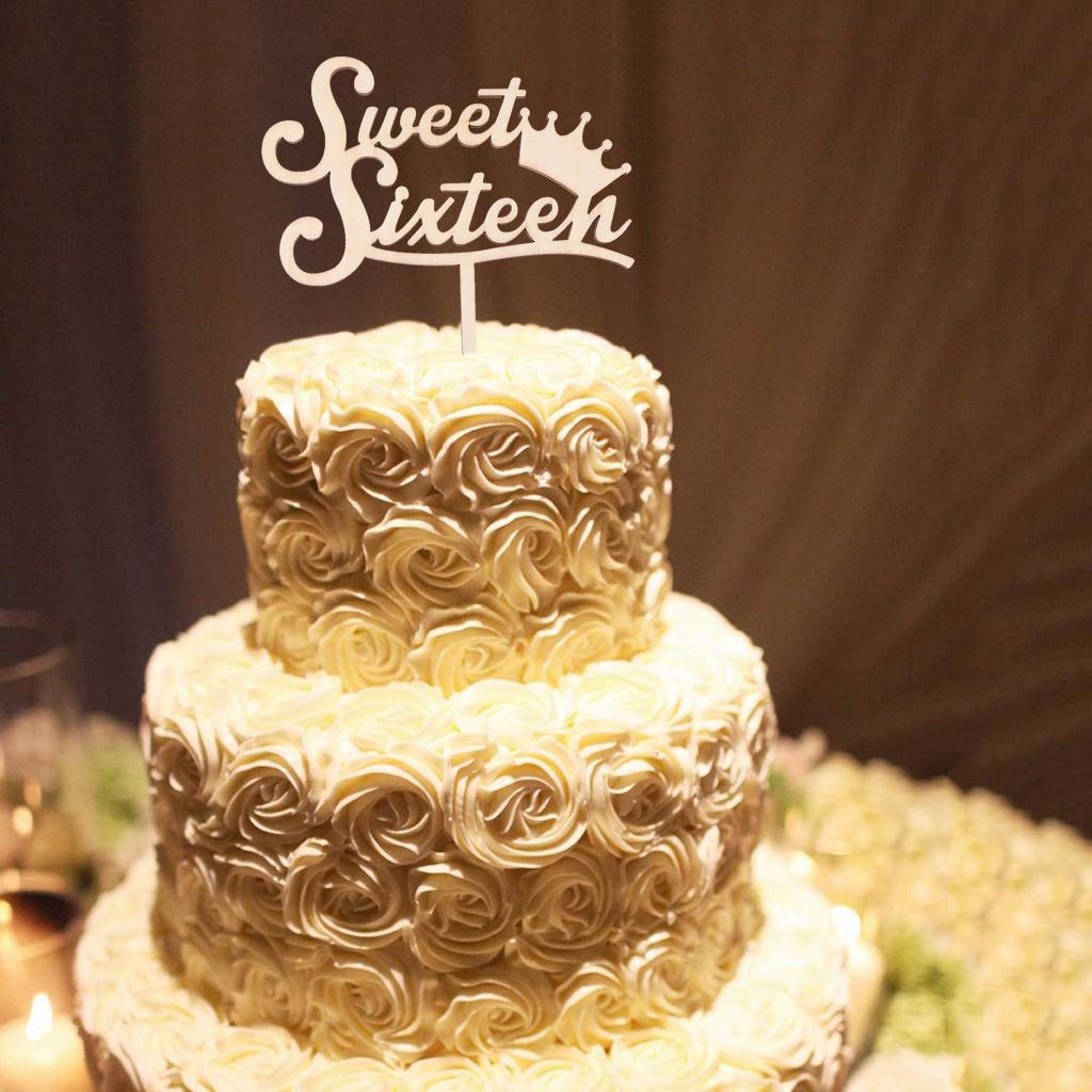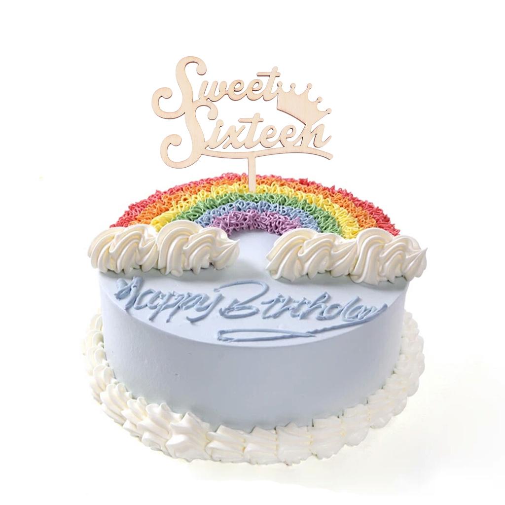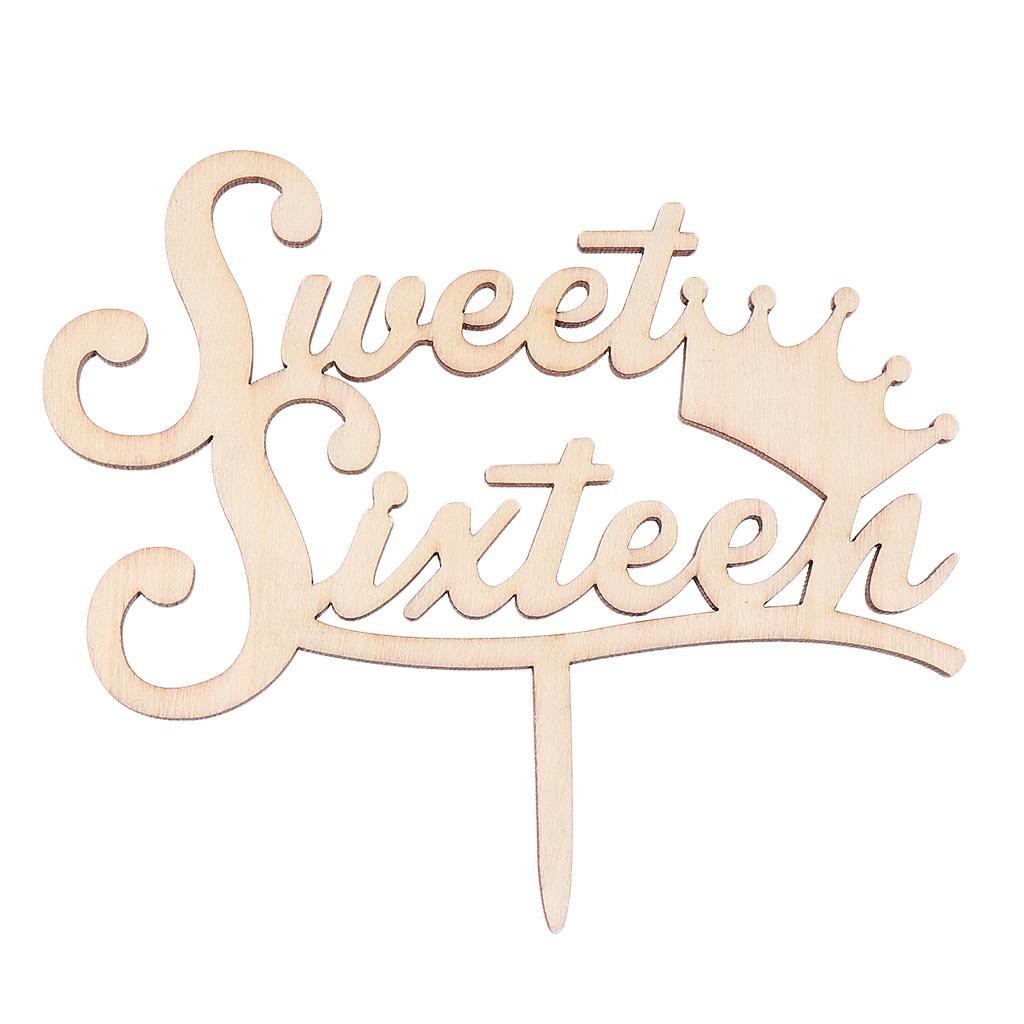 Sweet Sixteen Cake Topper Happy 16th Birthday Wooden Rustic Cake Decoration