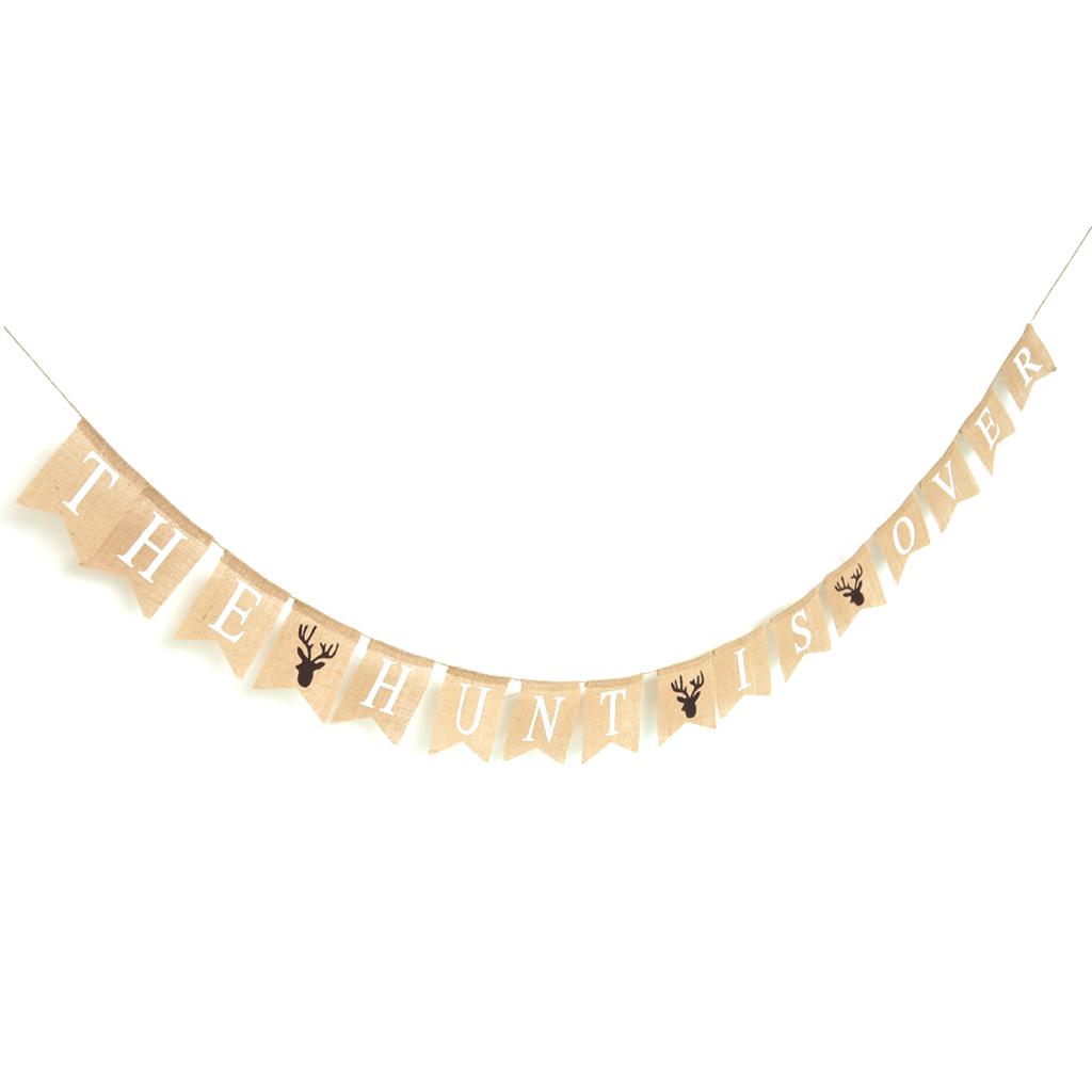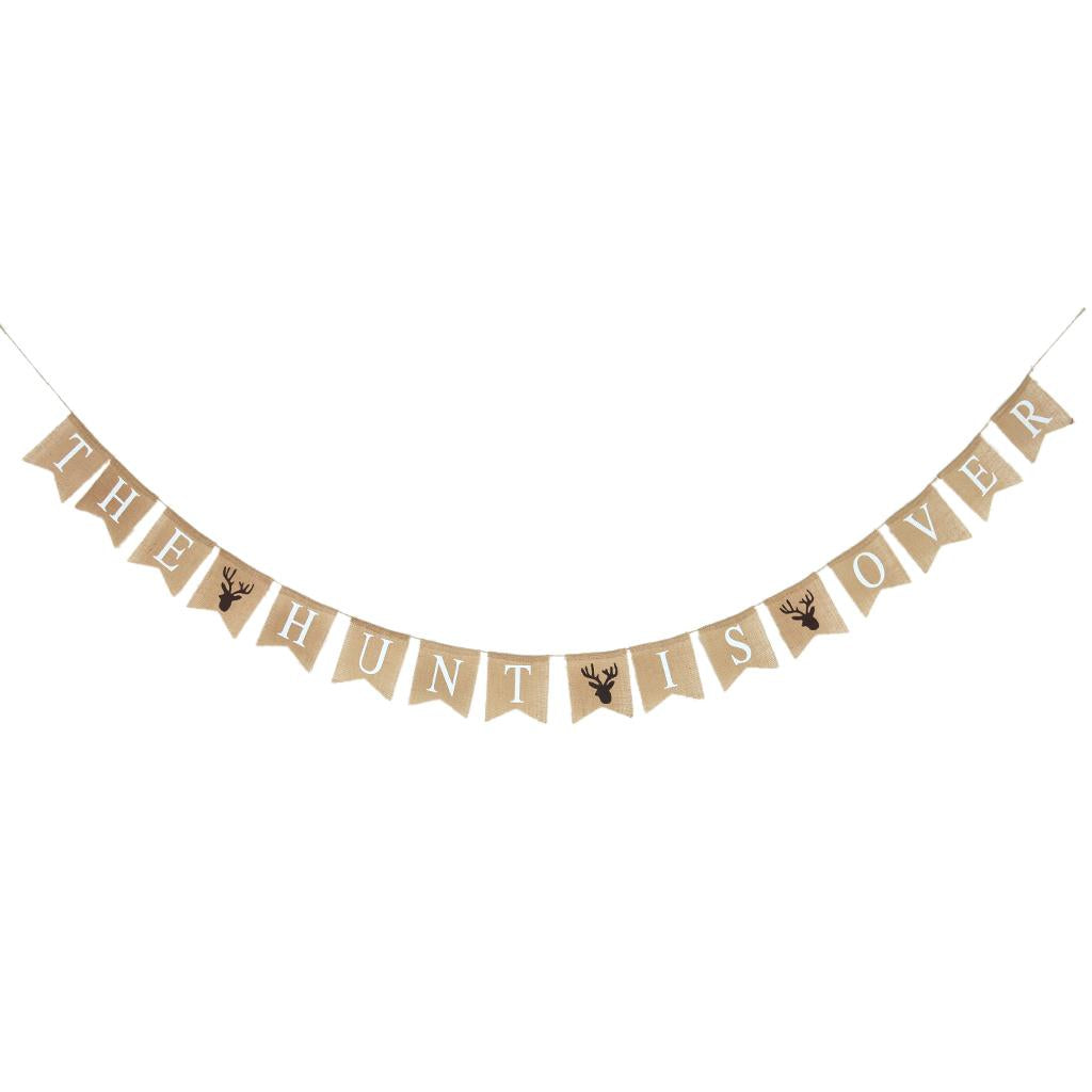 The Hunt Is Over with Deer Bunting Banner Party Garland Decoration Brown