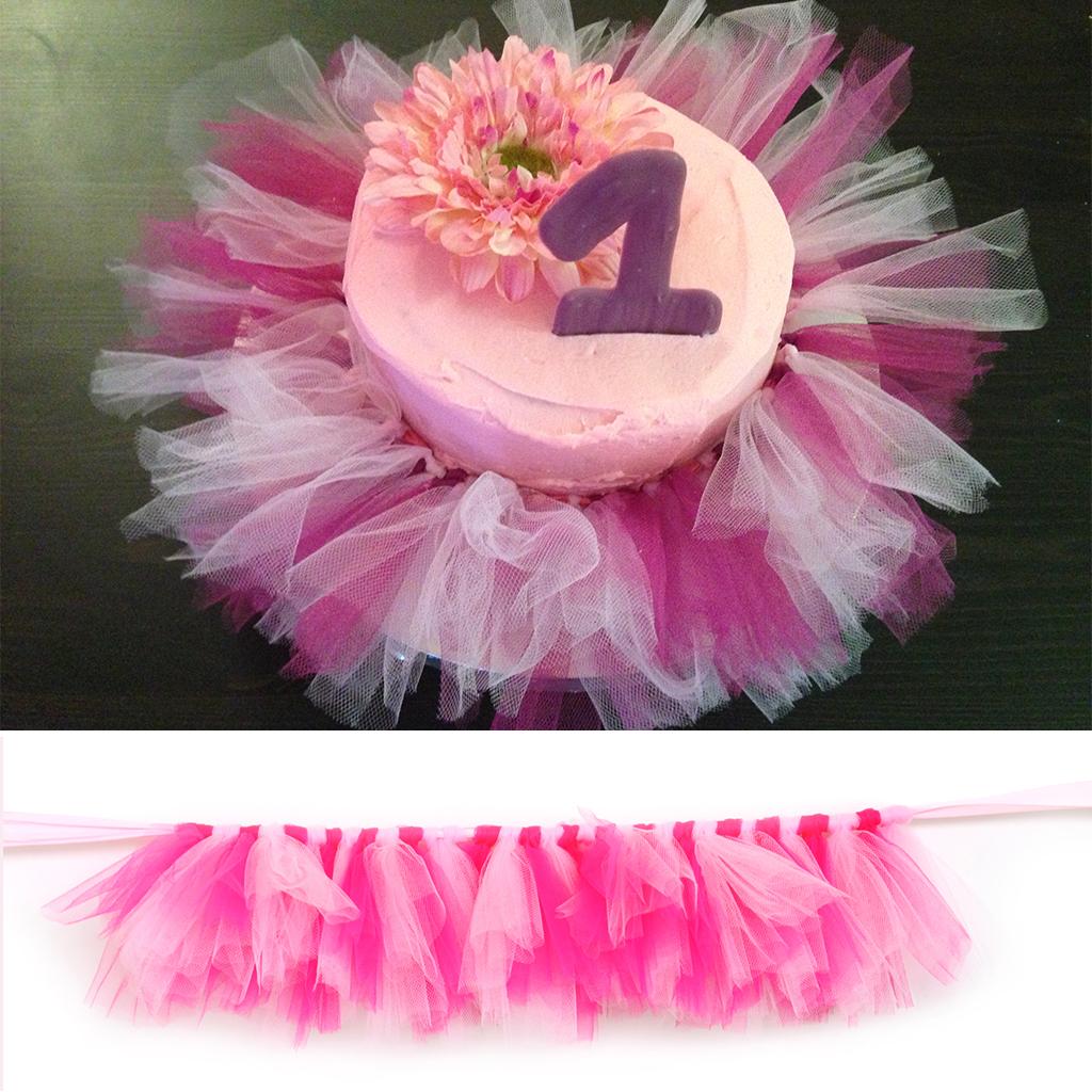 Tulle Tutu Cake Skirt Wedding Chair Party Birthday Xmas Decoration Prop Rose Pink