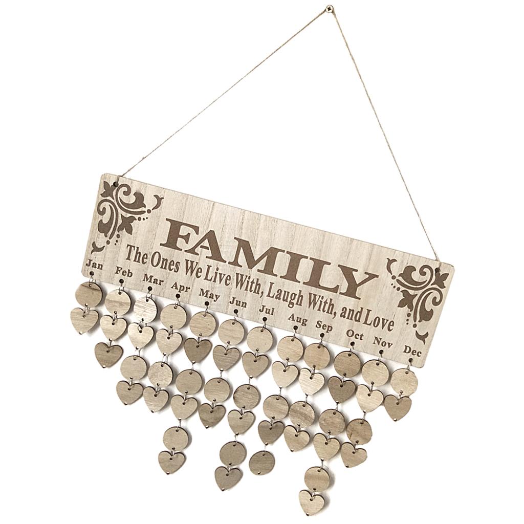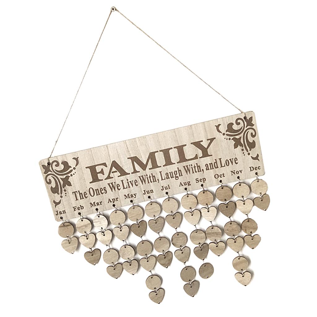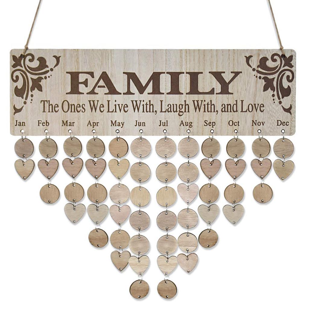 Rustic Wooden Family Reminder Plaque birthday planner Board with words decor- The Ones We Live With, Laugh With, and Love.