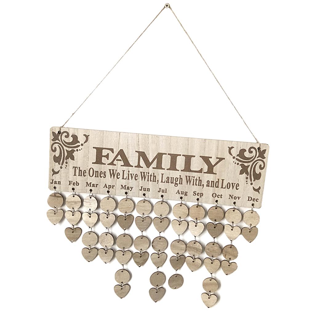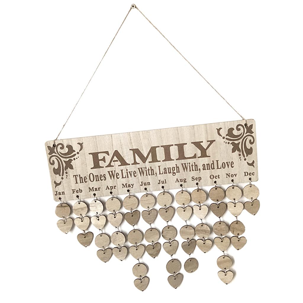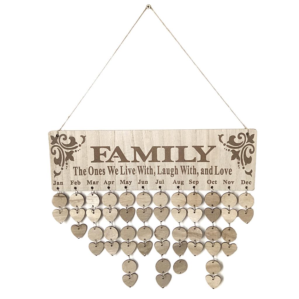Rustic Wooden Family Reminder Plaque birthday planner Board with words decor- The Ones We Live With, Laugh With, and Love.
