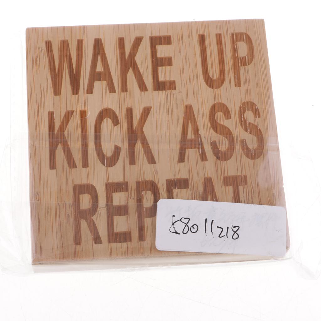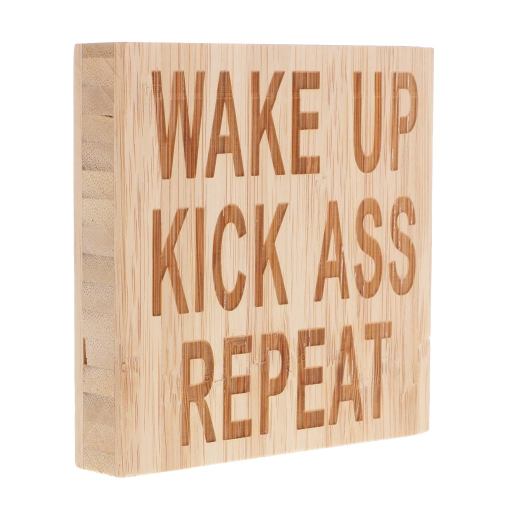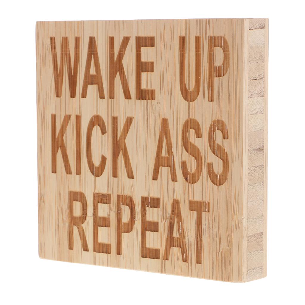 Funny wake up kick ass repeat board sign, which is the perfect decoration or directional sign for indoor or outdoor display.