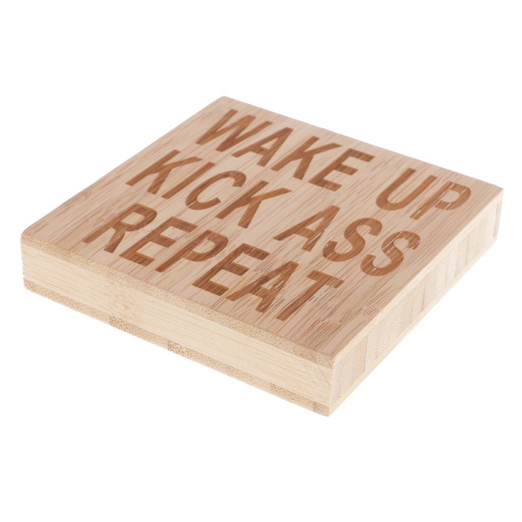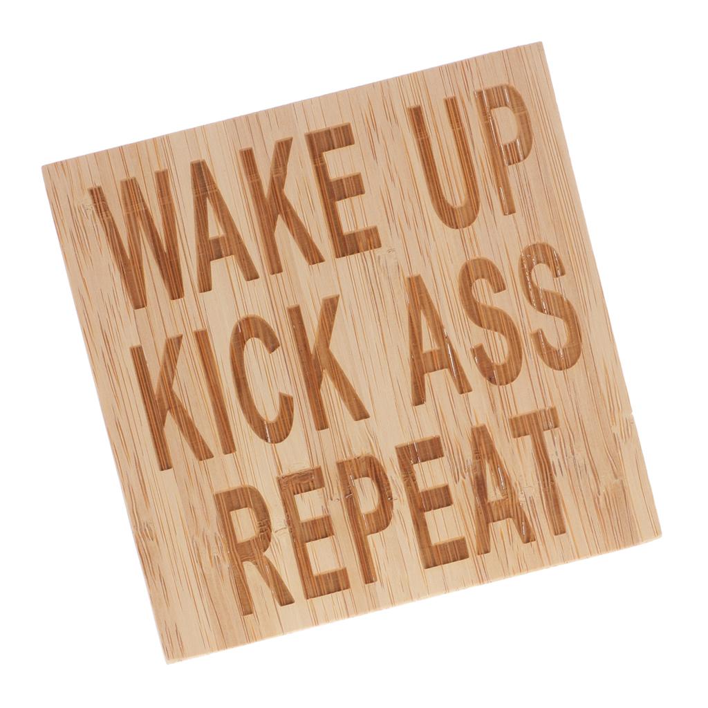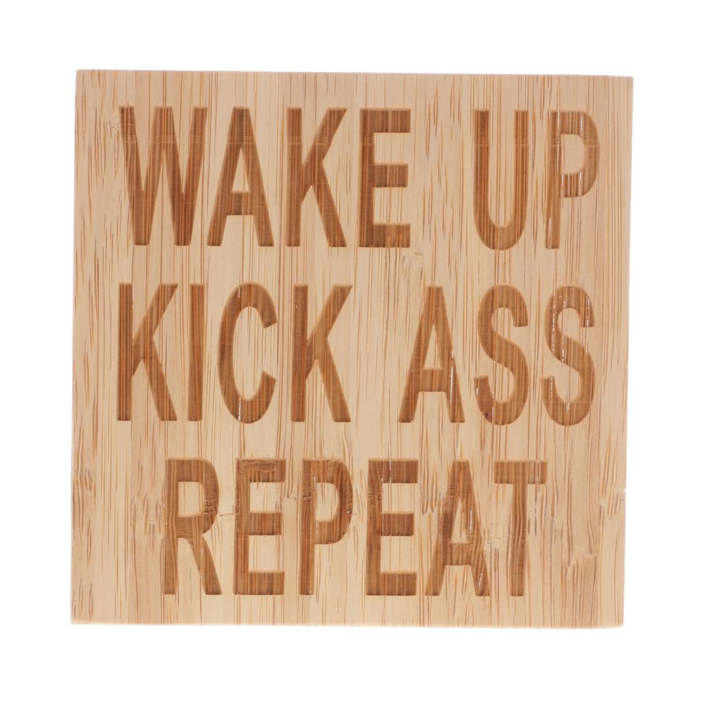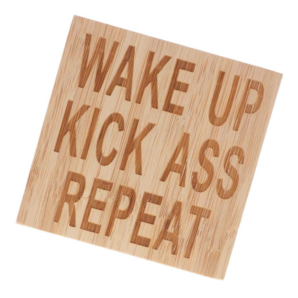 Funny wake up kick ass repeat board sign, which is the perfect decoration or directional sign for indoor or outdoor display.