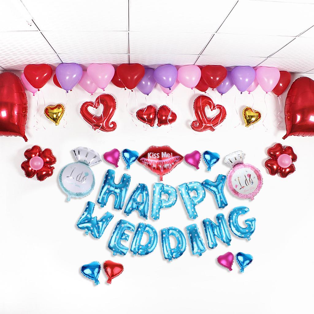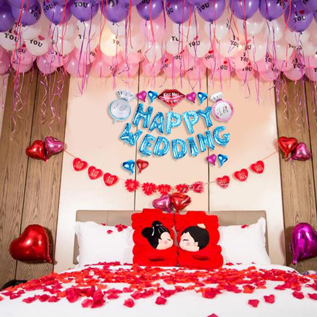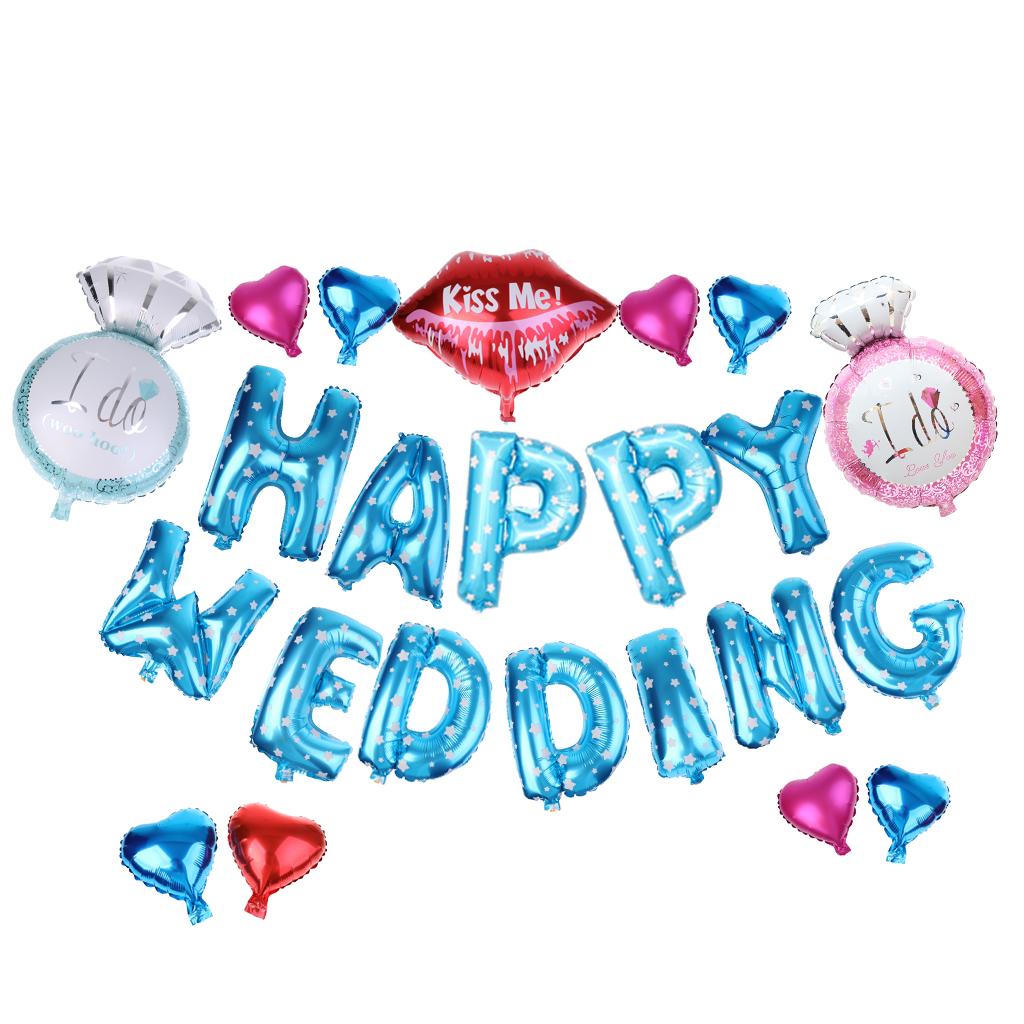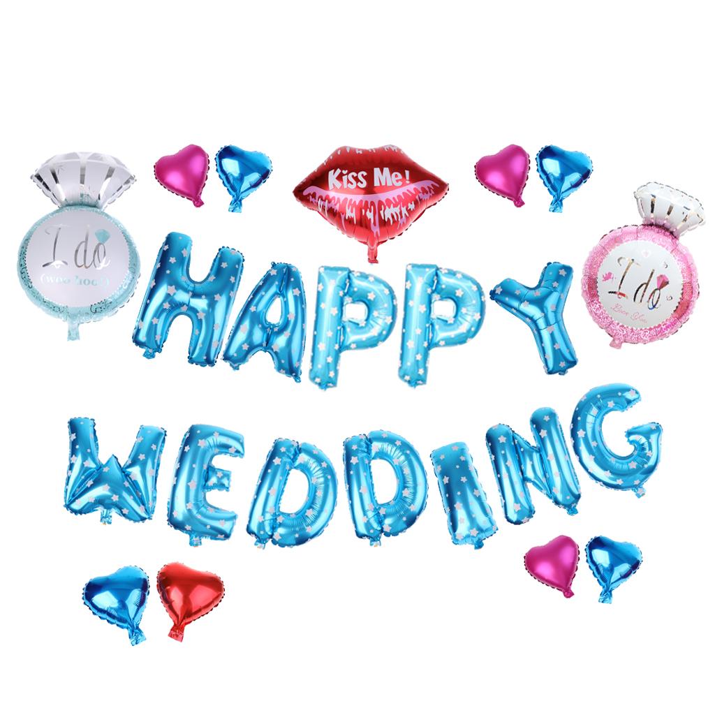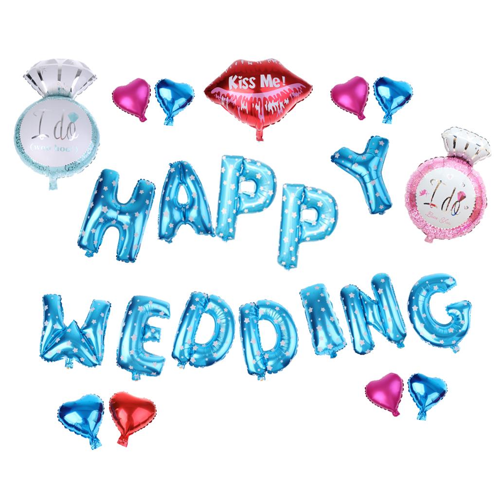 Includes alphabets HAPPY WEDDING, "I DO" diamond shapes, "Kiss Me" red lip shape and heart shapes
