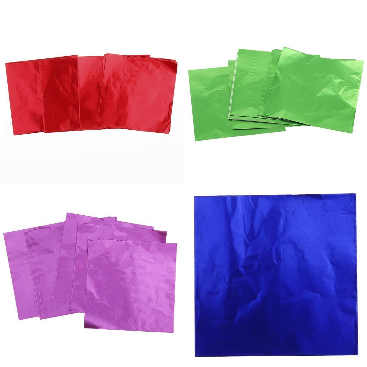 Wholesale 400 Pieces Chocolate Sweets Foil Wrappers DIY Package Candy Paper Aluminum Tinfoil Sheets Square 8cm x 8cm royal blue+ purple + green + red