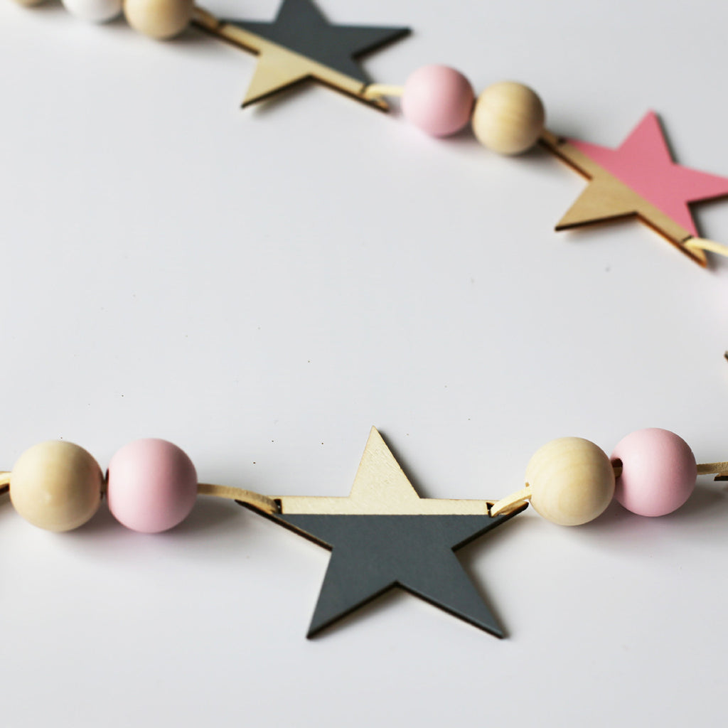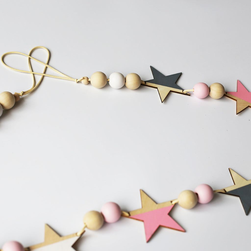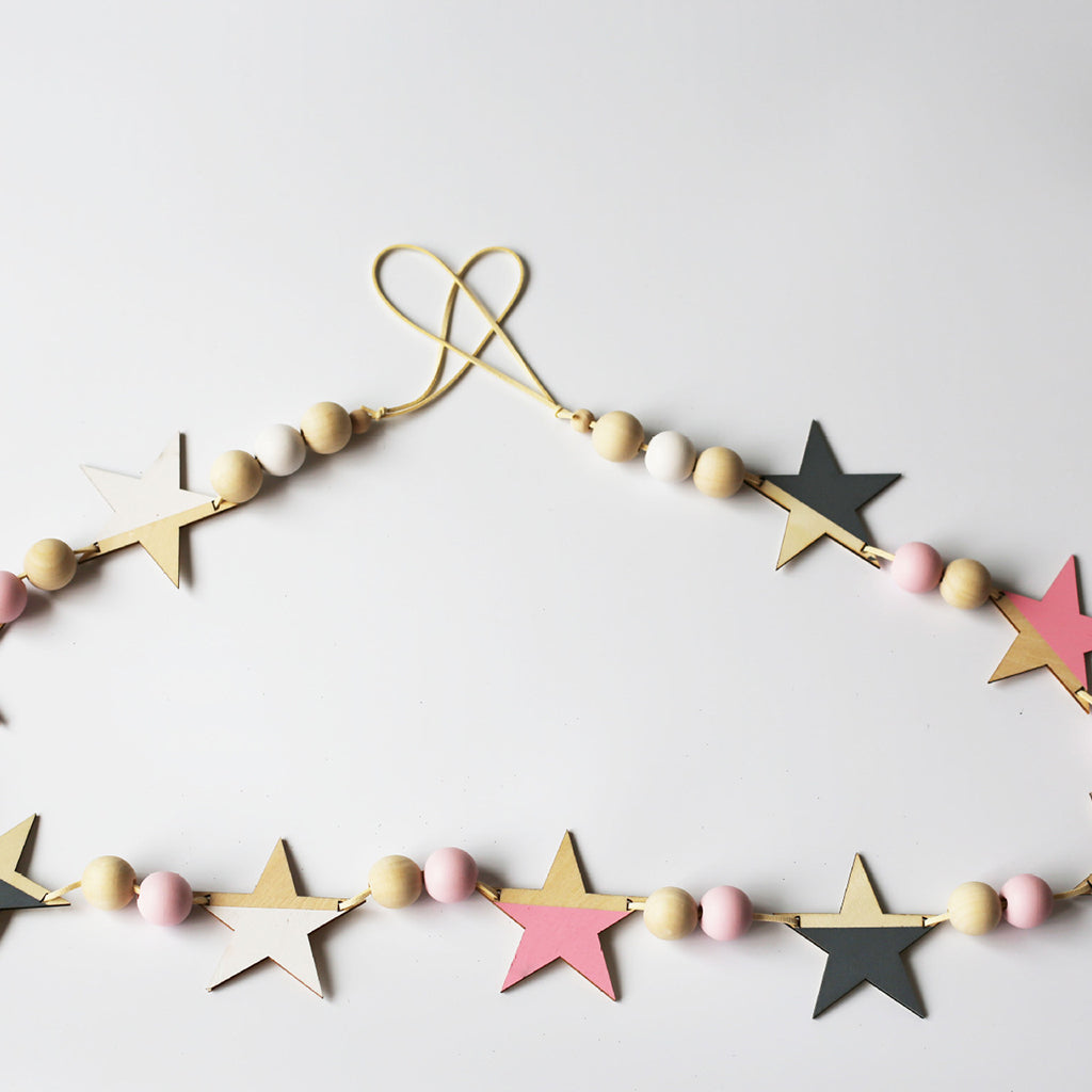 Wooden star garland for cheerful decoration any time of the year.