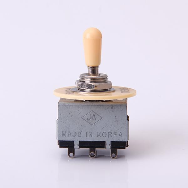This 3 way toggle switch is with box style, comes with cream colored knob and labeled ring, is designed for Gibson and LP guitars. This 3 way toggle switch is great guitar accessory.