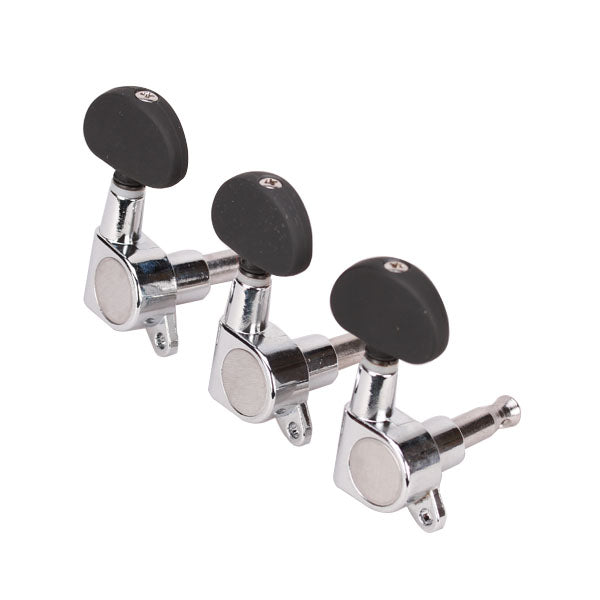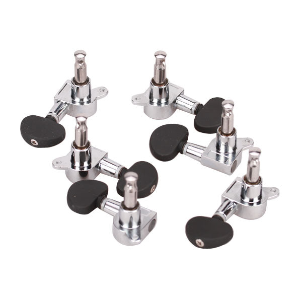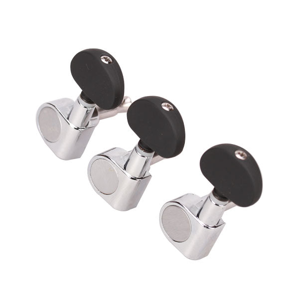 3L 3R Chrome Guitar Tuning Pegs Tuners Machine Heads w/ Black Scrub Button