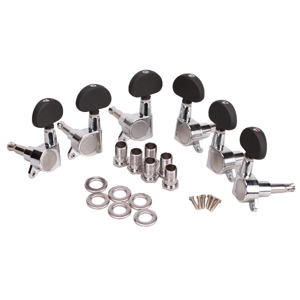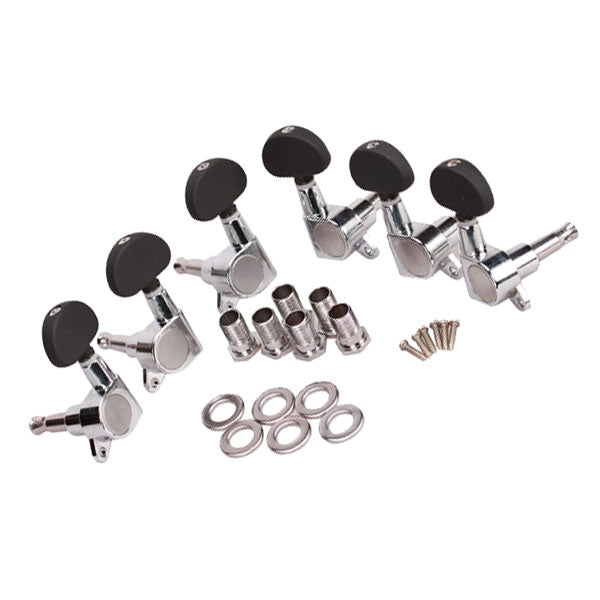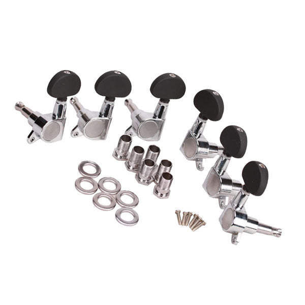 This set of tuning pegs (3L + 3R) are designed for electric or acoustic guitar. They are quality sealed machine heads which are used to tune up your guitar. These tuning pegs come with mounting screws, ferrules and threaded bushings, great replacement for your broken or old guitar tuners!