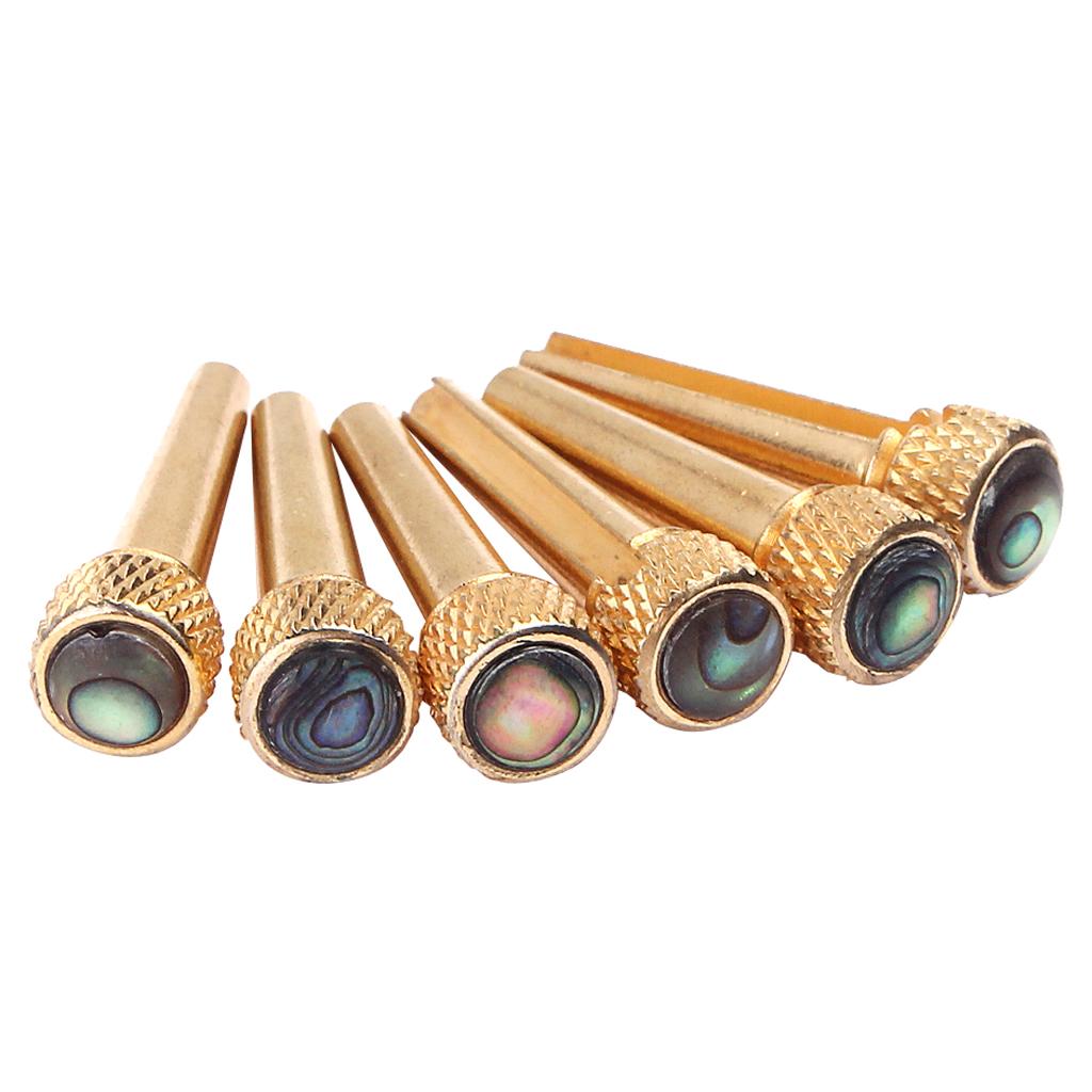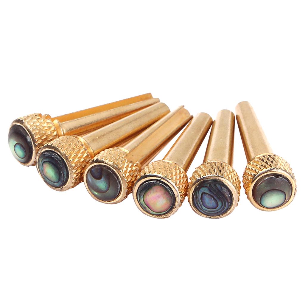 6pcs copper guitar bridge pins with abalone shell inlay dot.