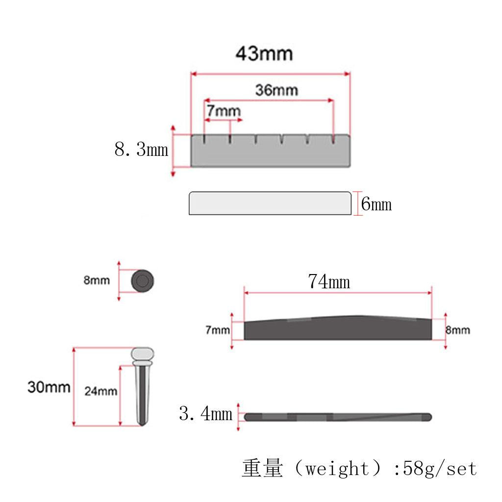 Size: nut 43x8.3x6mm ,saddle 74x8.3x6mm ,pin 30x8mm.