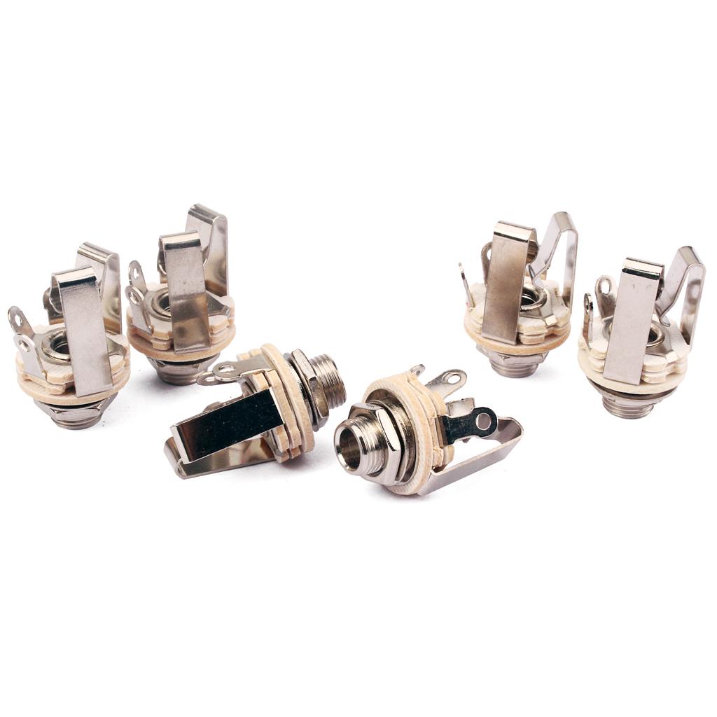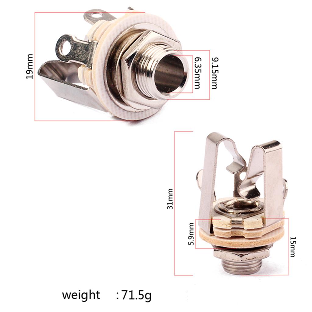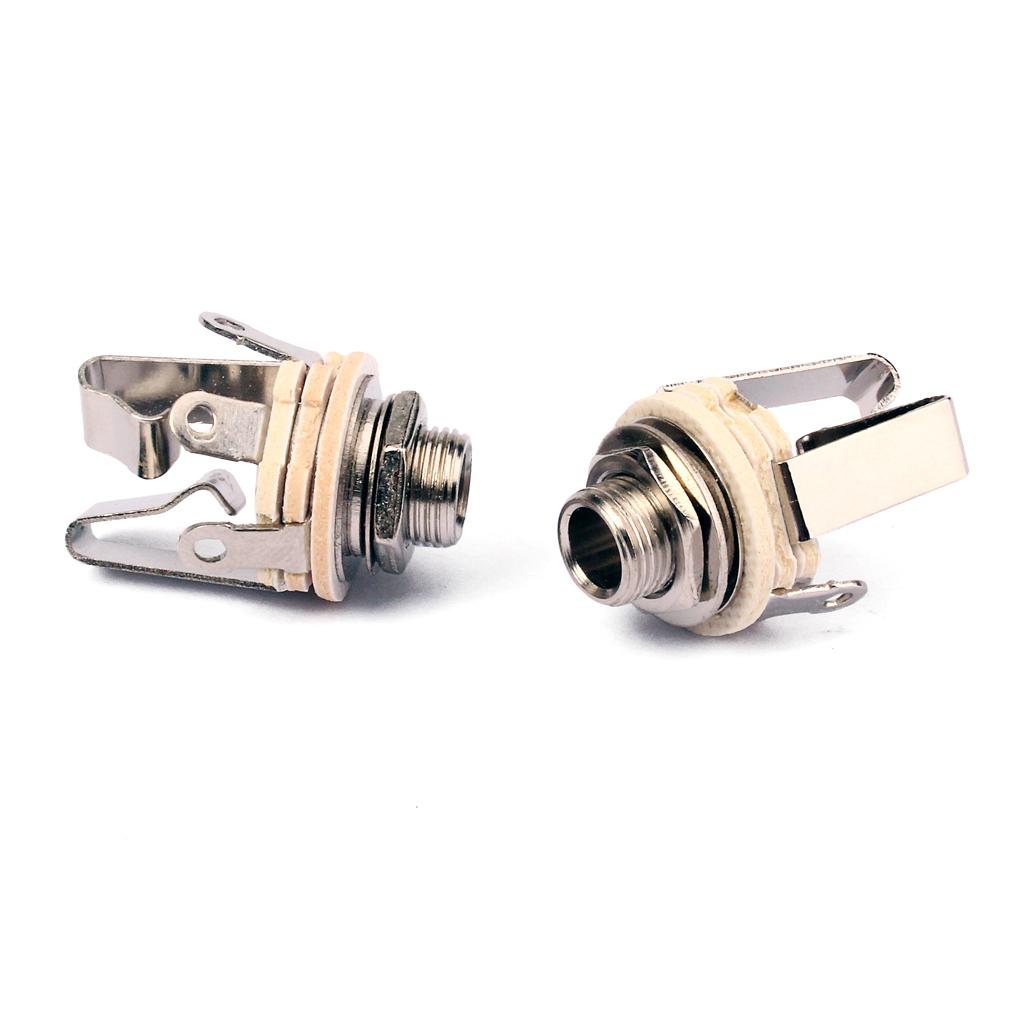 Standard 1/4"stereo jack with two nuts and washer for proper height adjustment.