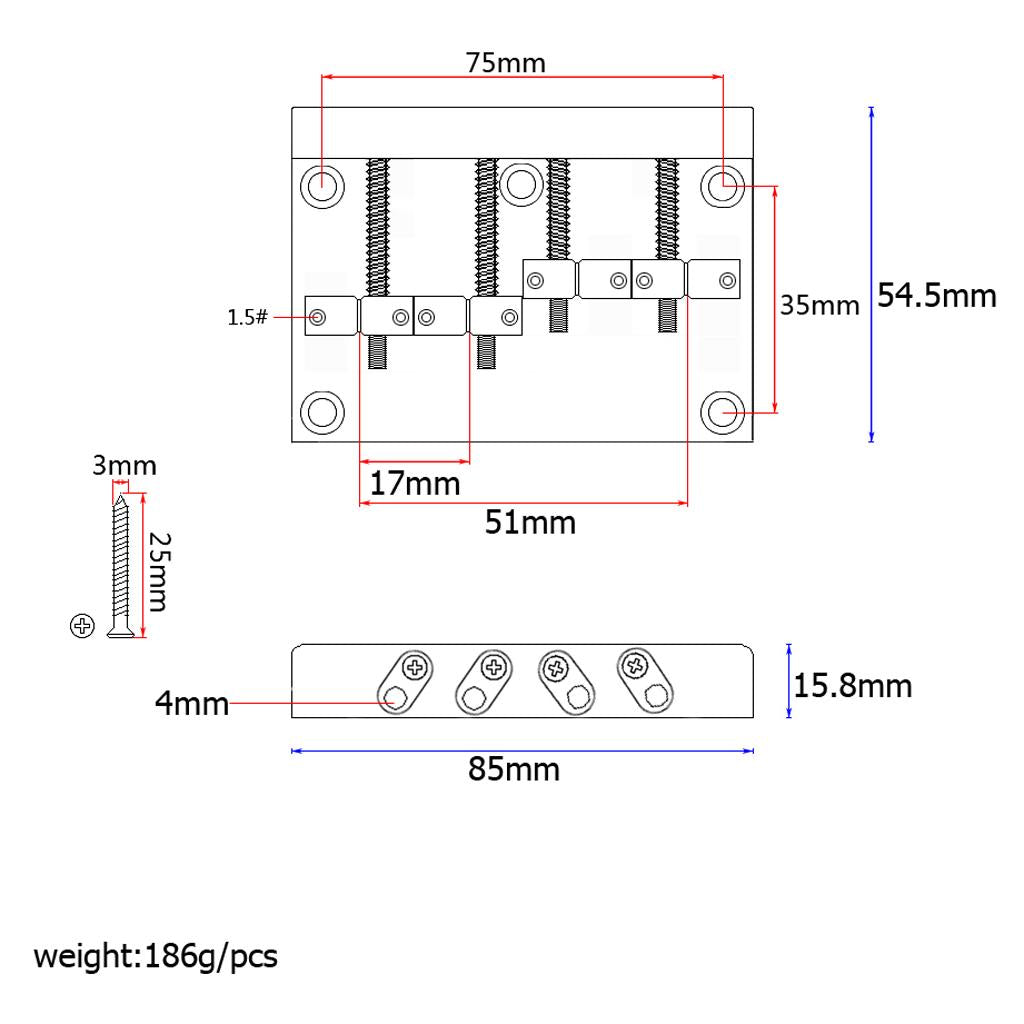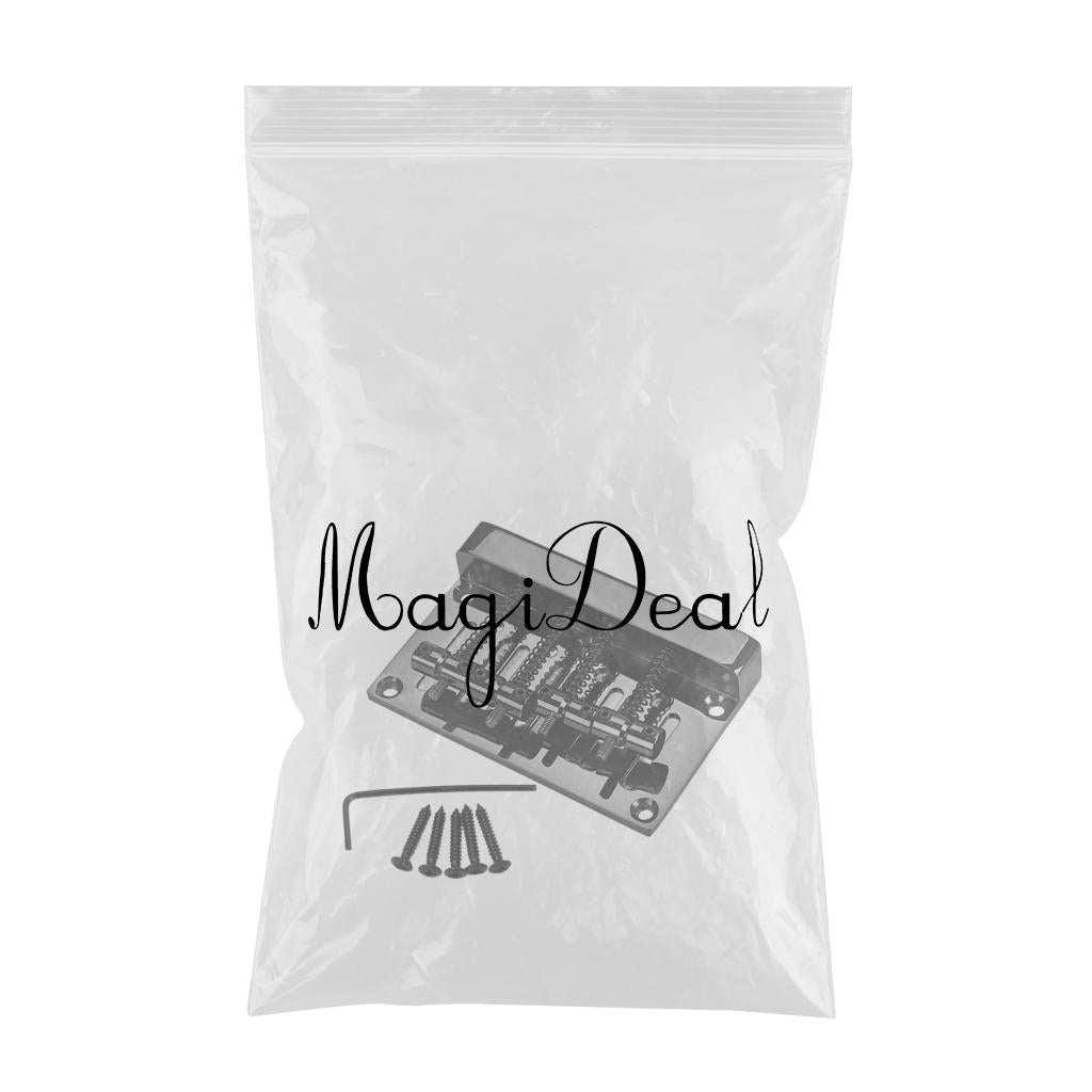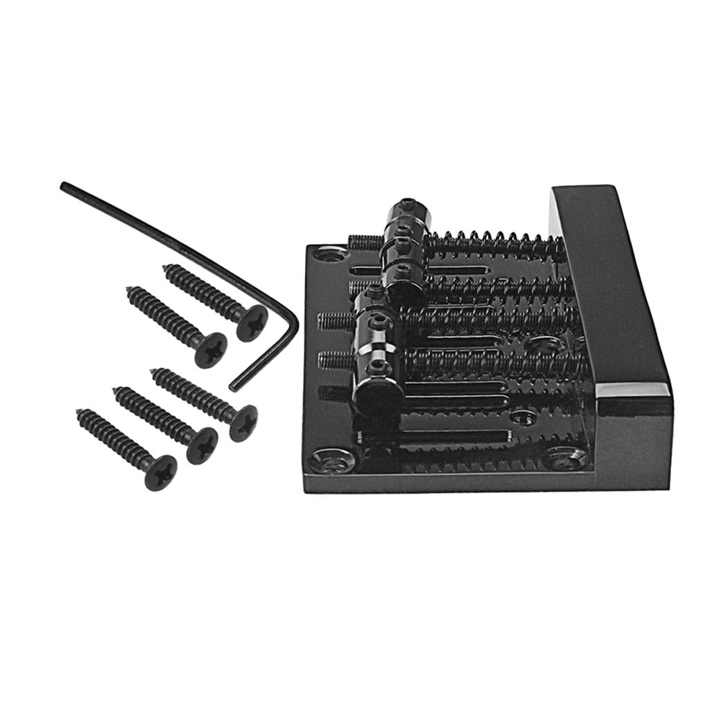 This is standard four string bass bridge, comes with mounting screws and hex wrench. This black four string bass bridge is great upgrade for your current bass.