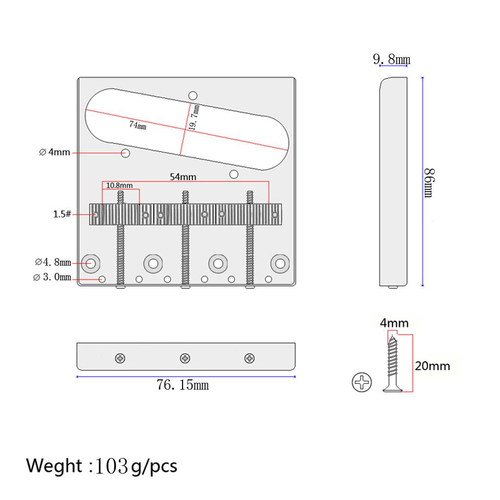 Features 3 brass saddles, with intonation and height adjustments for each string.