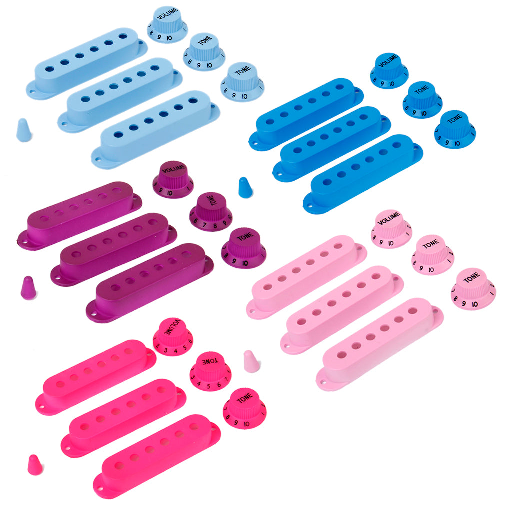 Deep Pink Guitar Pickup Cover and Knobs Switch Tip Set
