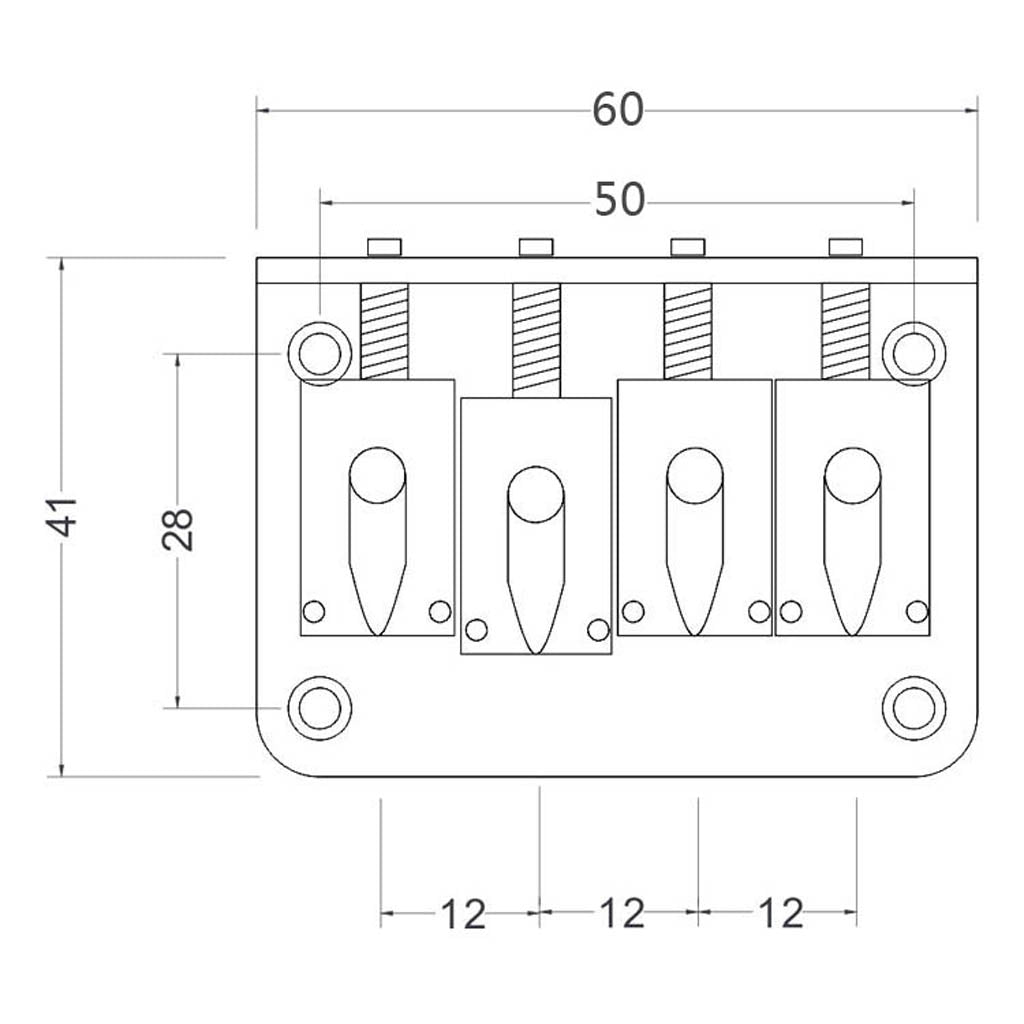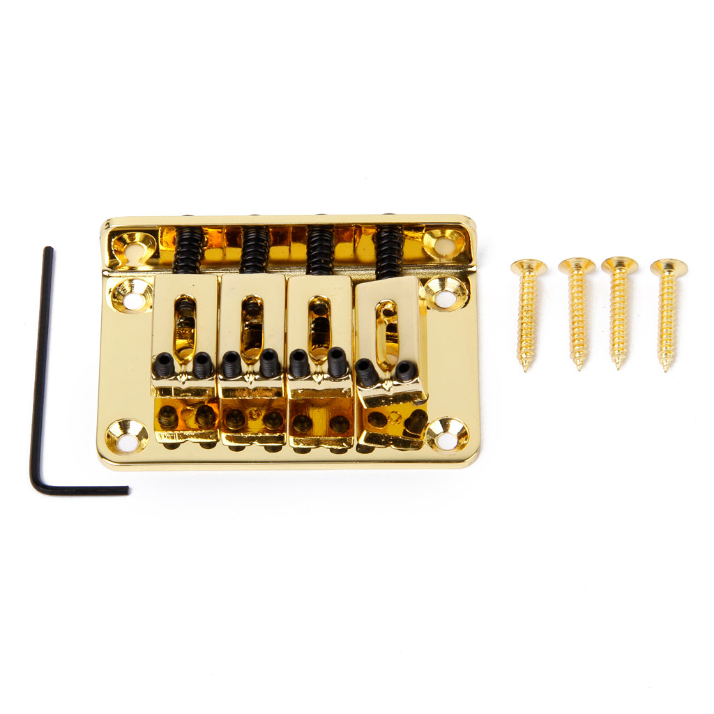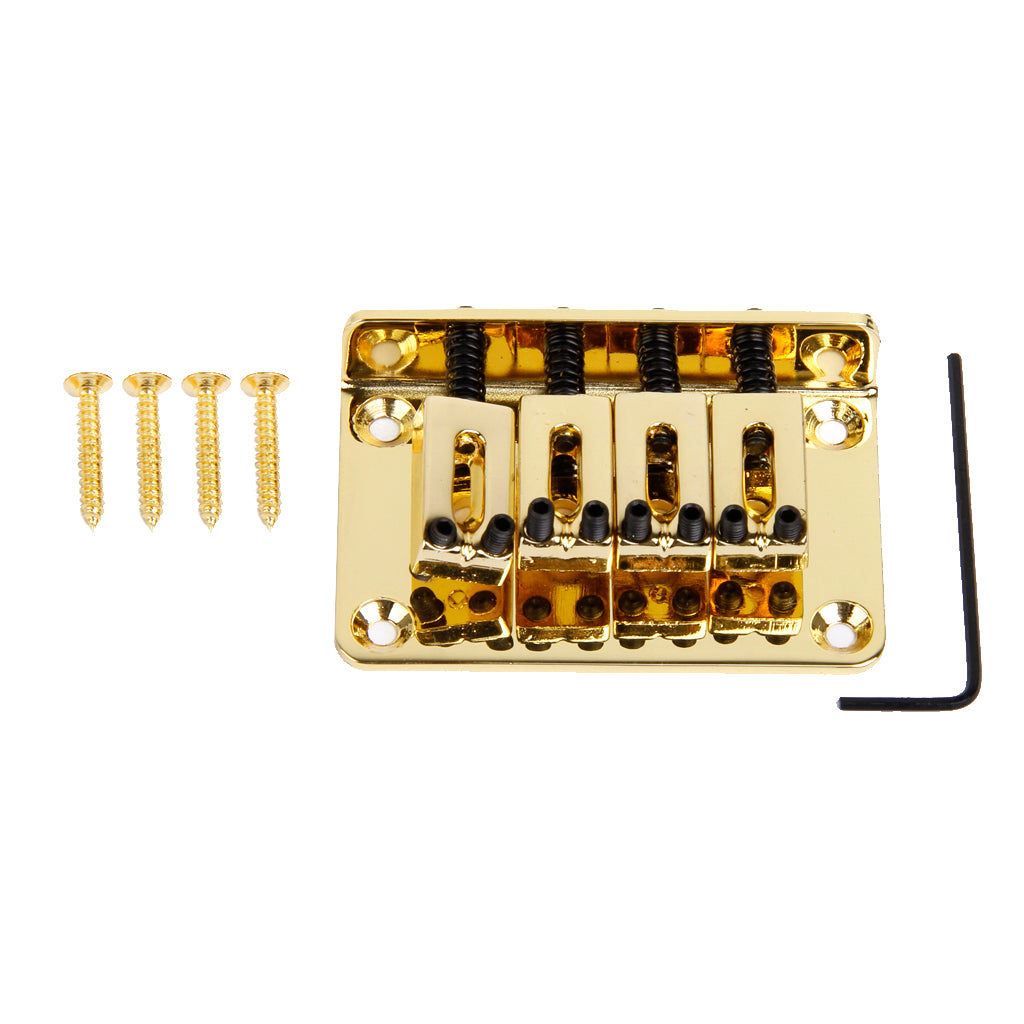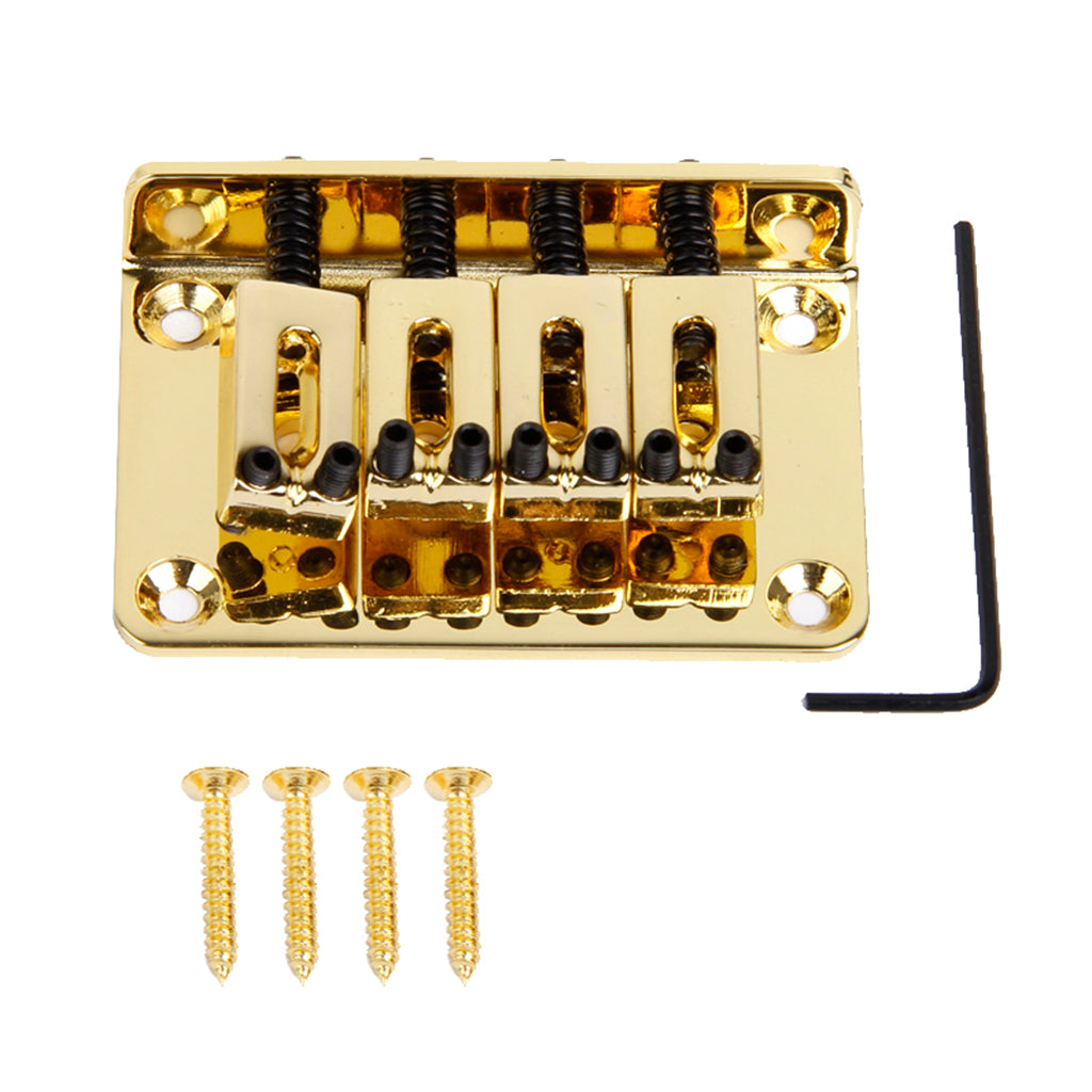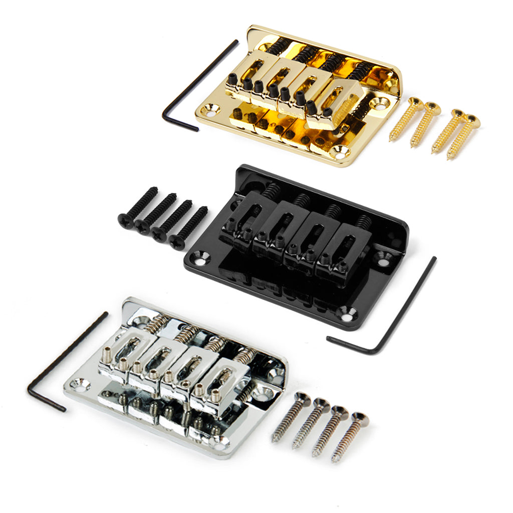 This is standard four string bass bridge, comes with mounting screws and hex wrench. This black four string bass bridge is great upgrade for your current bass.