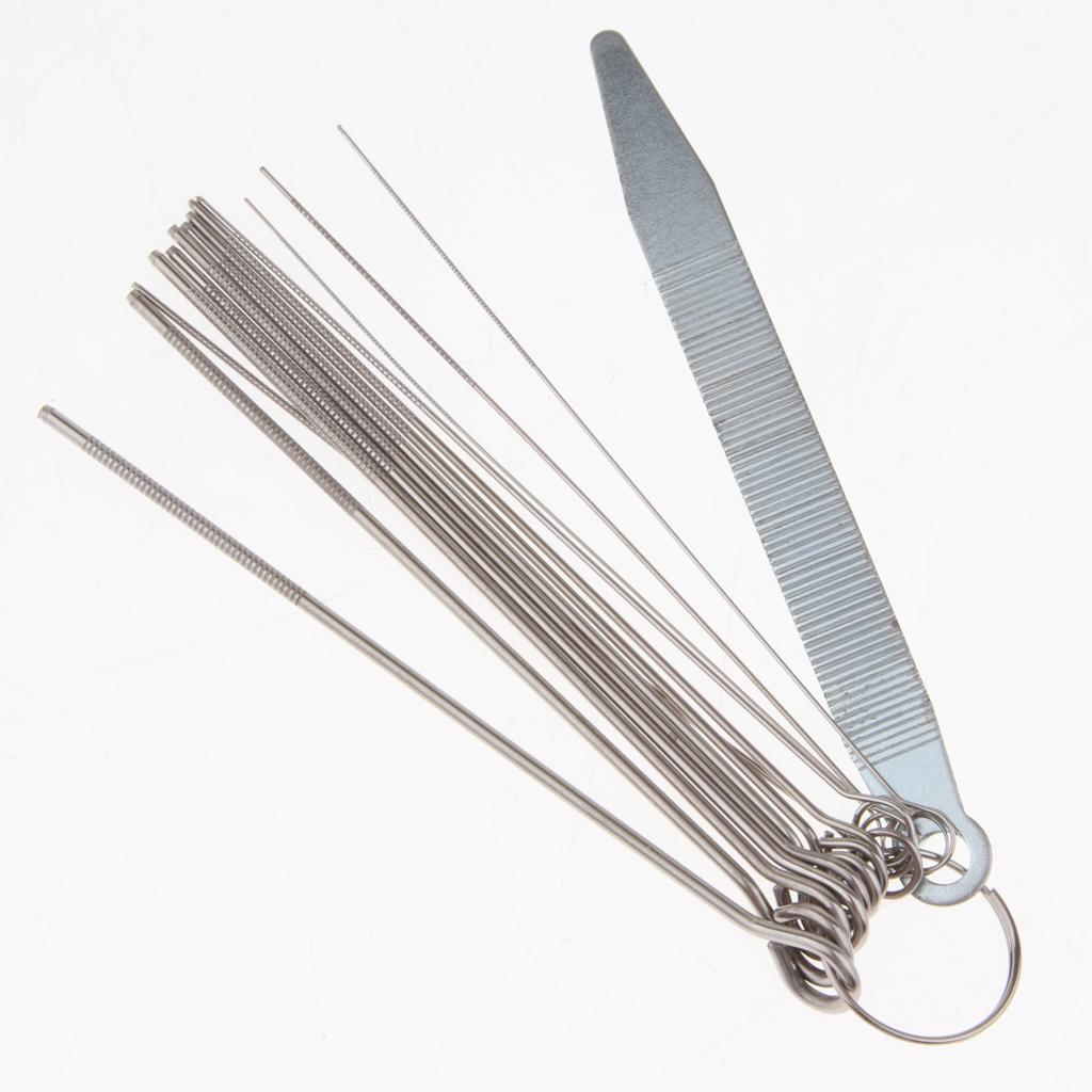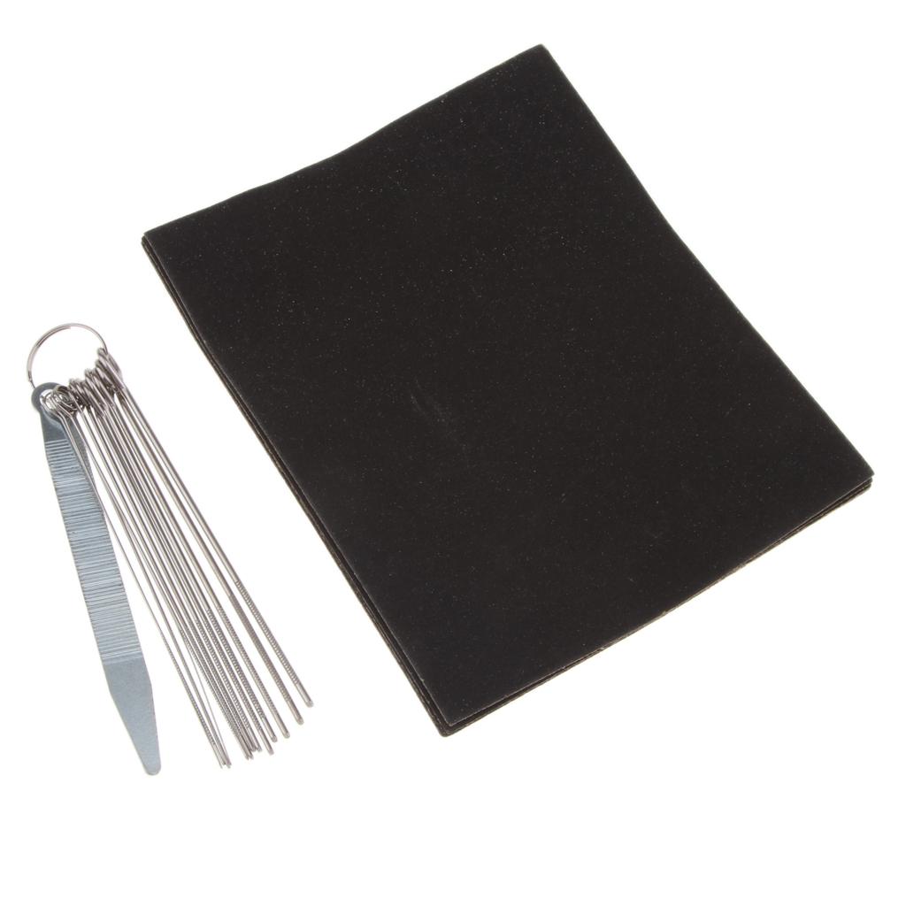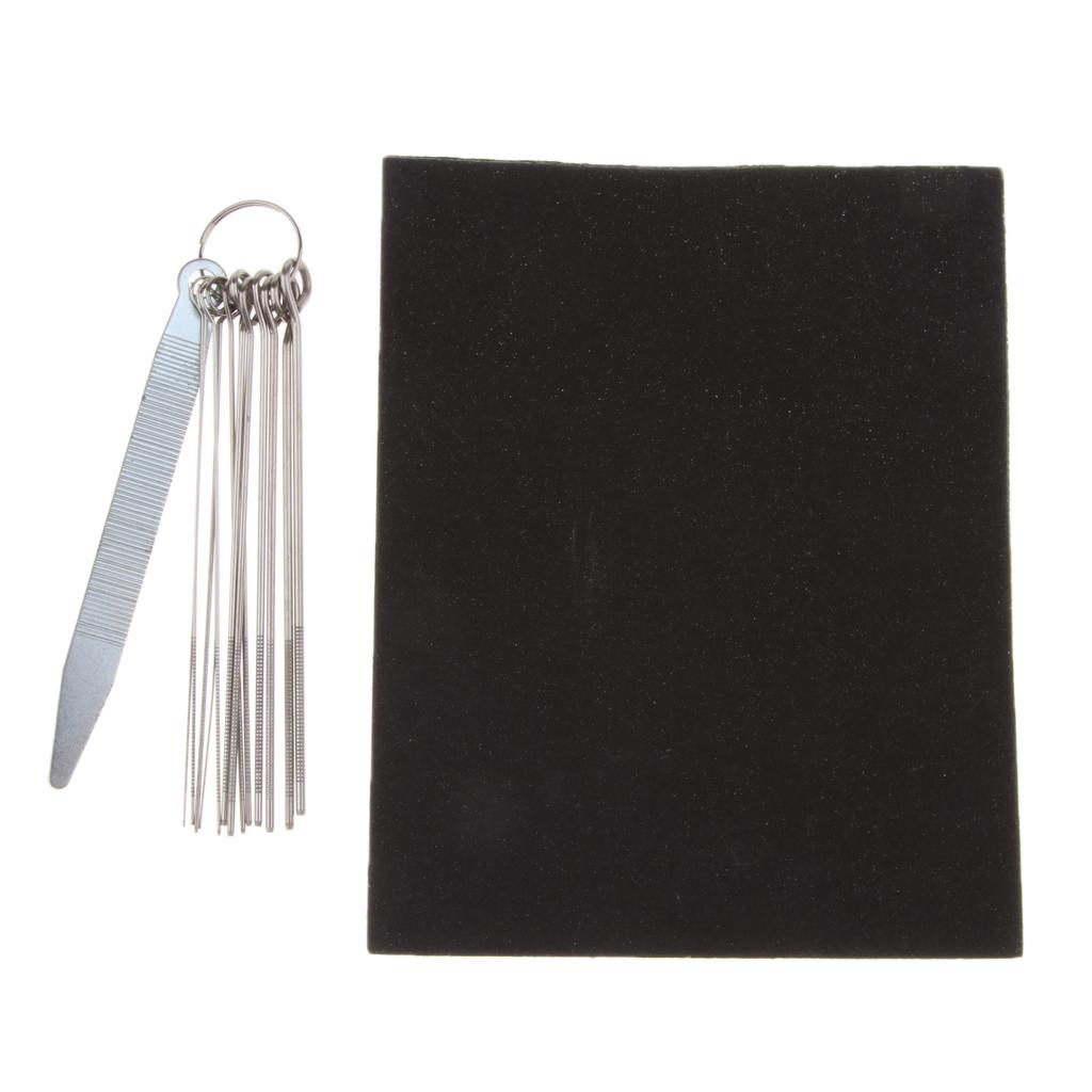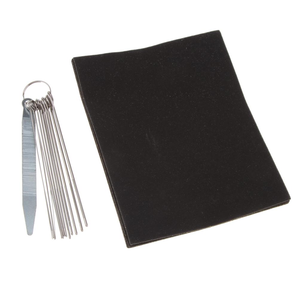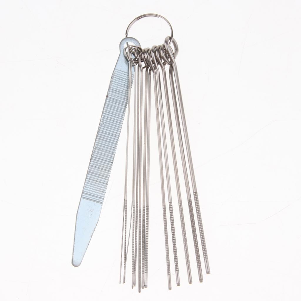 This is a handy set of 13 round files( for the depth of string slots) and 1 x flat file( for the height of nut and bridge)